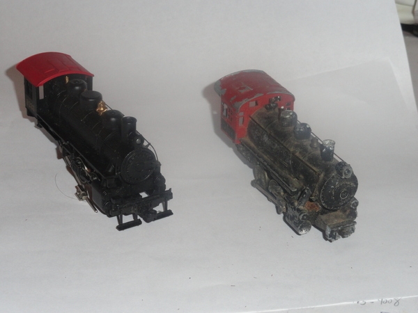 My recent Ebay purchase. Two 0-6-0 steam engines. The shiny one is a Bachmann and the old, dusty one a Mantua. Including shipping I got them for less than $12.00. I couldn't resist buying the old, crusty Mantua.