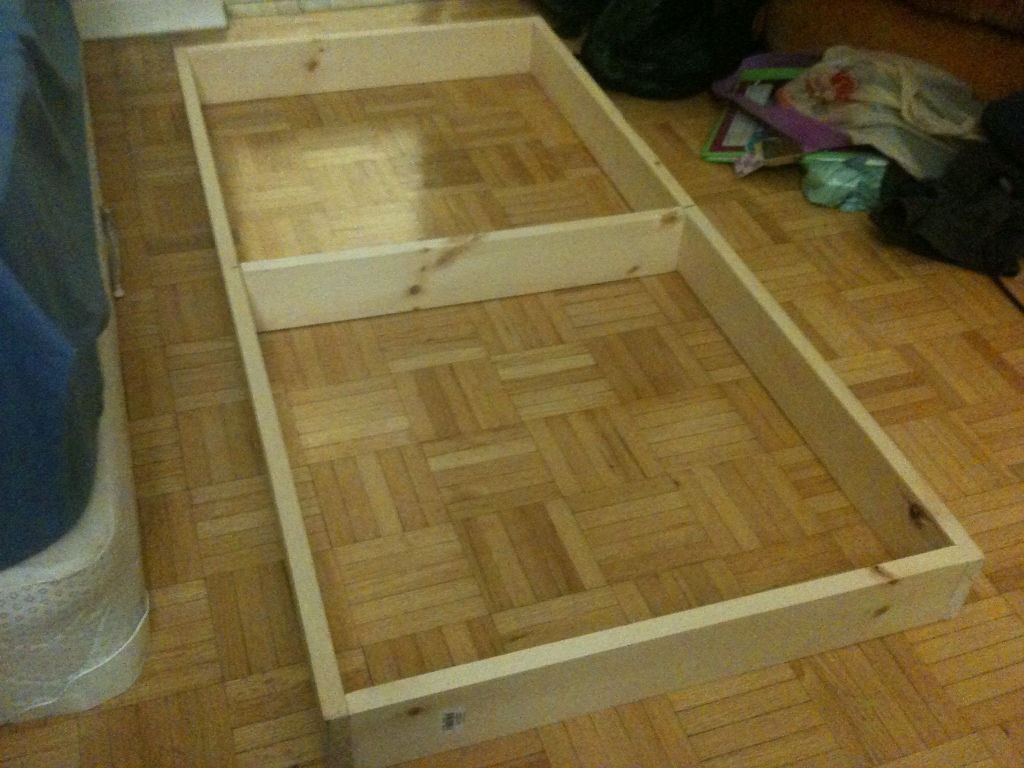 I'm building the layout in small sections for portability. To start off there will be two 4'X2' sections that will each hold a semi-circle of track. Basically I'm starting off with a circle...I can add more sections in later. Here's the first section:
