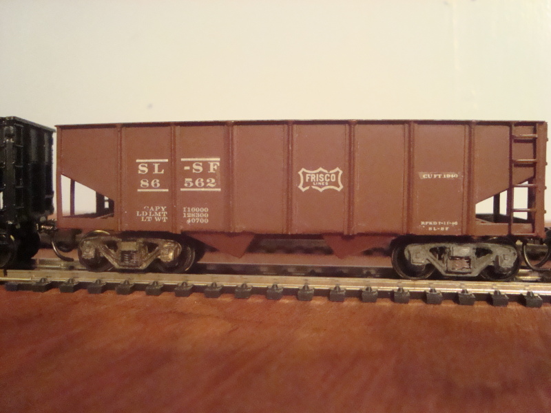 Here is my latest rework. She is an old late '40's Mantua brass caboose. She was in very sad shape when I got it at a show a few years ago. I started to paint it for Monon when I was modeling that railroad 2 years ago. Never made it past the paint and road number phase. I didnt feel like stripping it again as most NYC wood side cabooses were a light brown color. I prefer a red caboose anyways so rule #1 applies, its my railroad. The square holes in the body are for missing little square castings that were supposed to be marker lights. I plan to pick up either a set of brass castings and jewels or a pair of lighted Tomar markers to go on one end of the caboose. The only plastic on the thing is the window material I used. rest is either brass or diecast metal. Second pic is of my old Tenshodo SLSF (Frisco Lines) 2 bay coal hopper. Found this in a $2 box of freight cars, even has old Kaydee Andrews sprung trucks. I had to put Kaydees on it, but for a 2 spot I am not complaining one bit. Gotta watch those trays of cars. A light tap with your fingernail will tell the tail if its metal or brass. I just paid the gentleman and went on my way. Cheers Mike