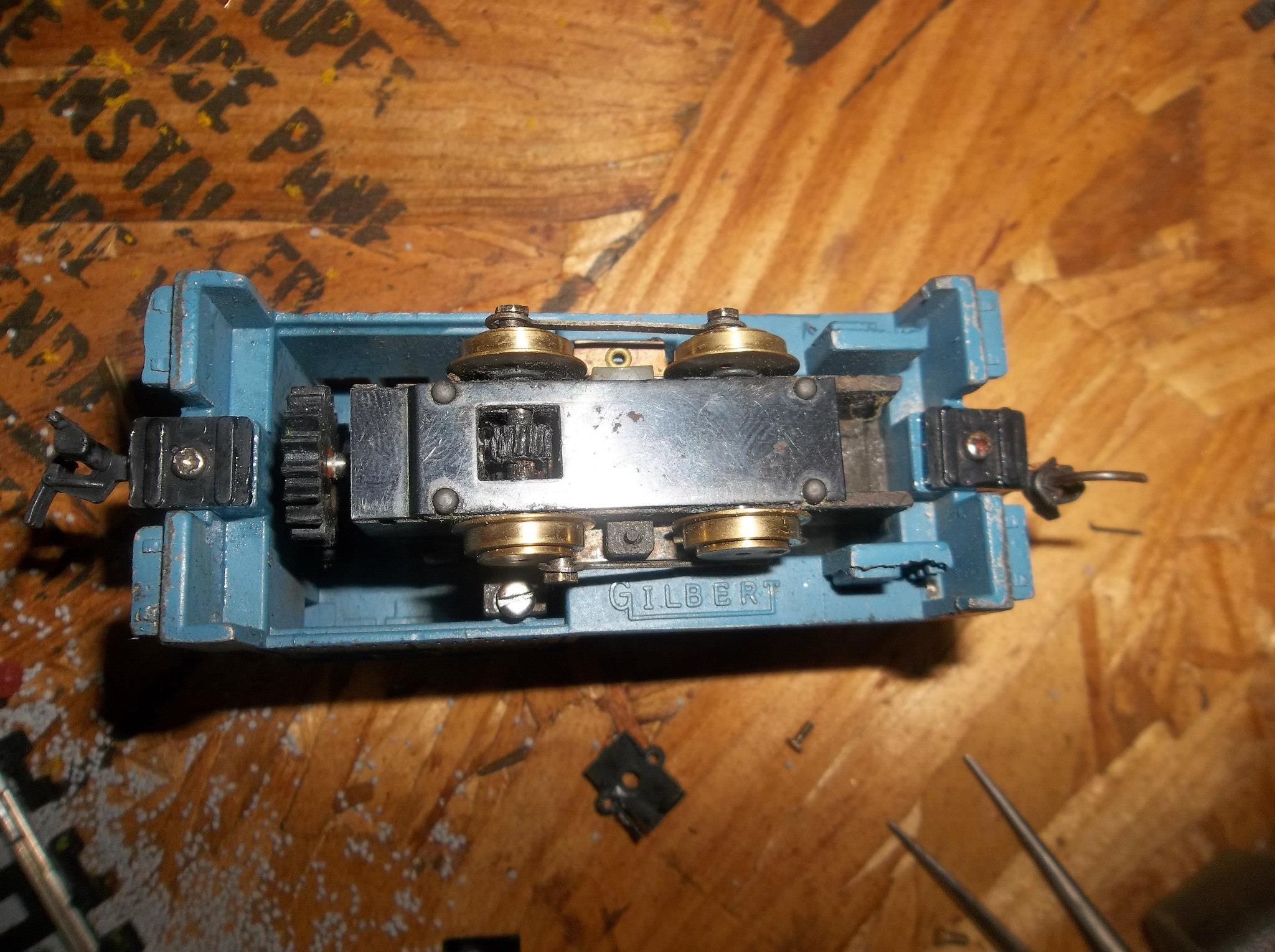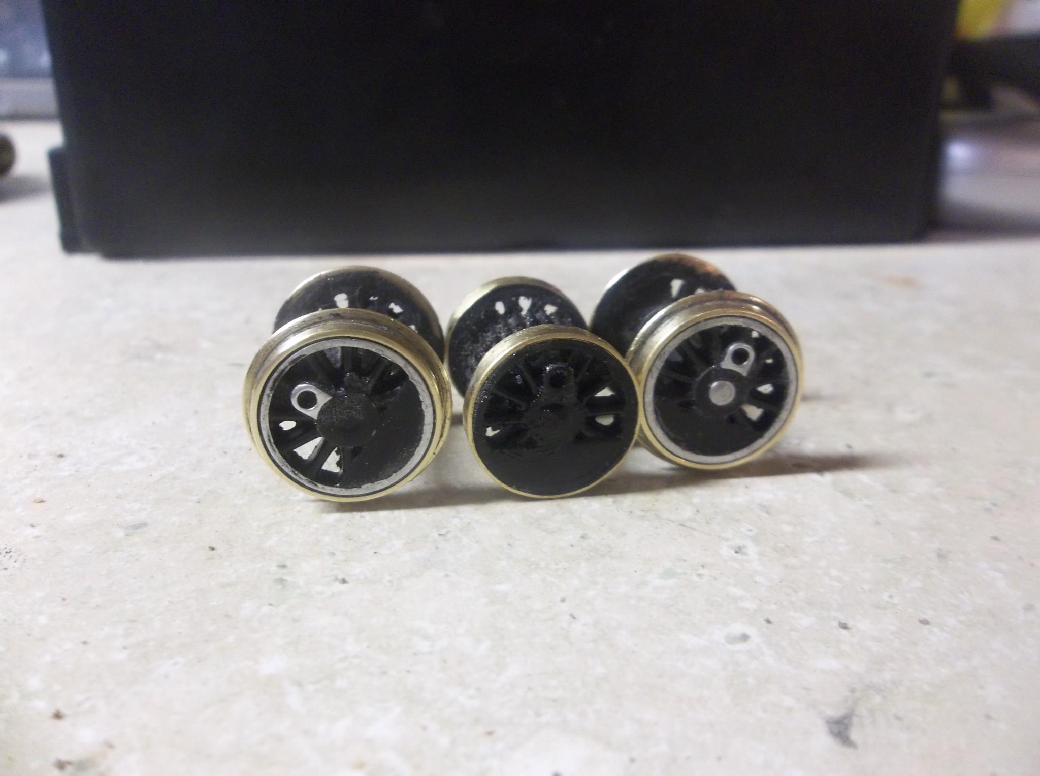 tender trucks were painted, wheels and pick up plates cleaned. Motor inside was masked during tender frame paint. Motor lubed, tested, works great! Problems getting the front truck installed is why it's not on. It will be finished tommorow!