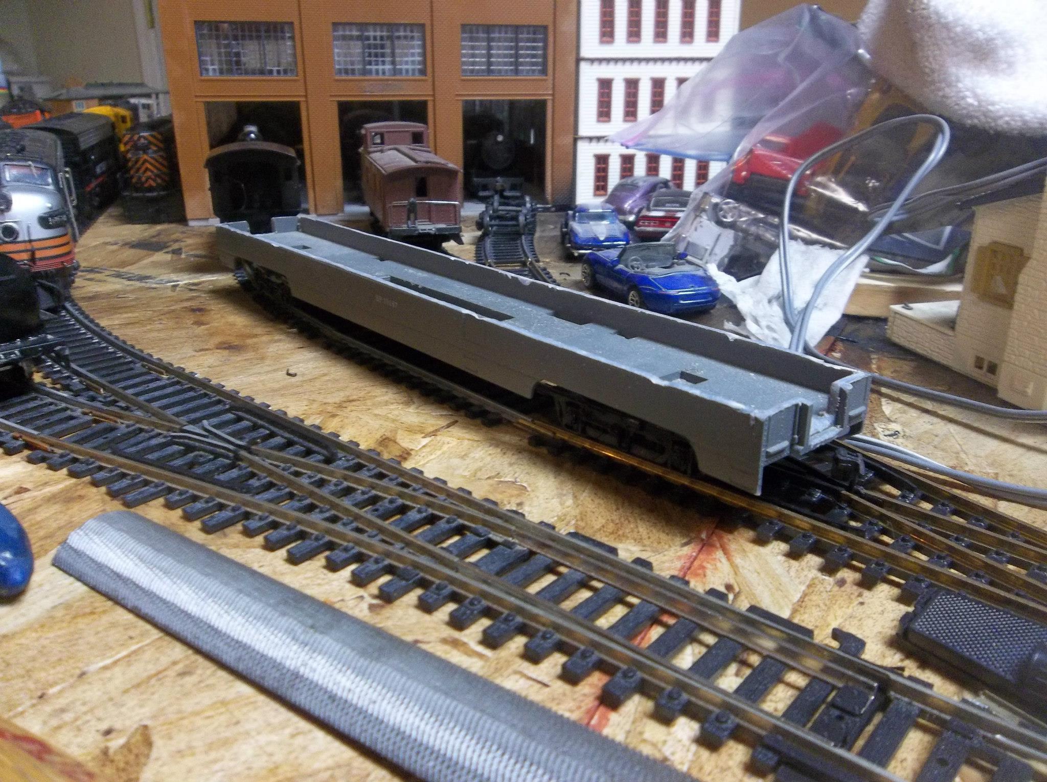 Also went to work on my old excursion car projects, made from old AHM gondolas they were started years ago and left in primer and after 2 years its worn but they have been finished the body work at least and they will be primed again and painted black then steps will be built and seats purchased and added!!