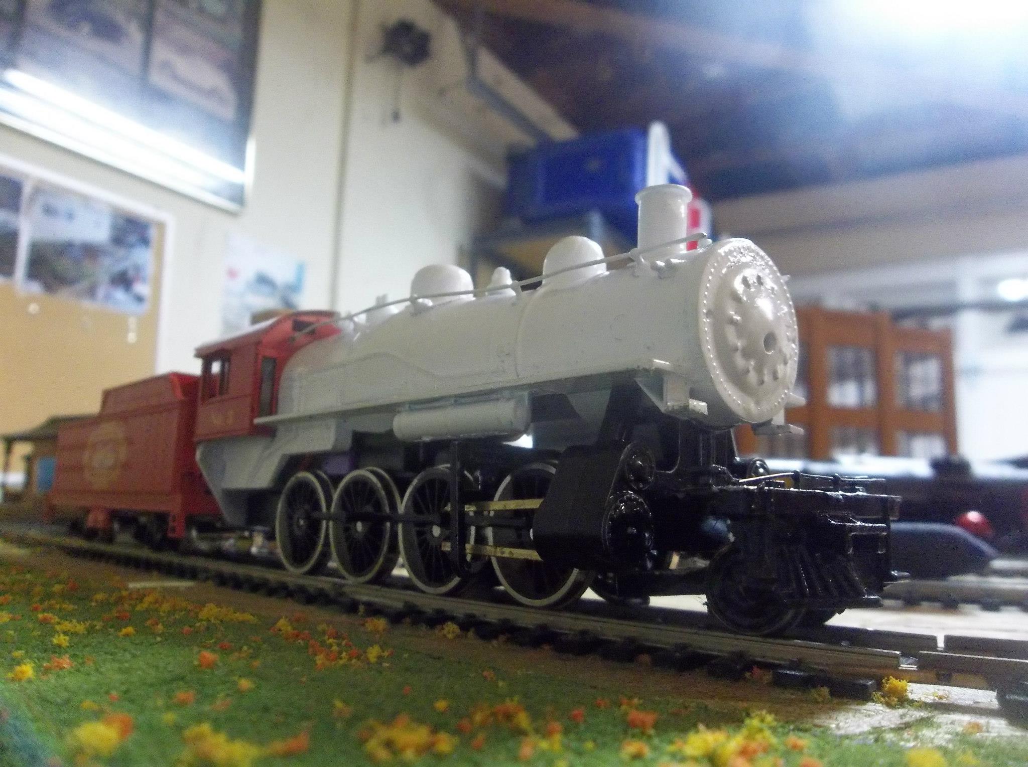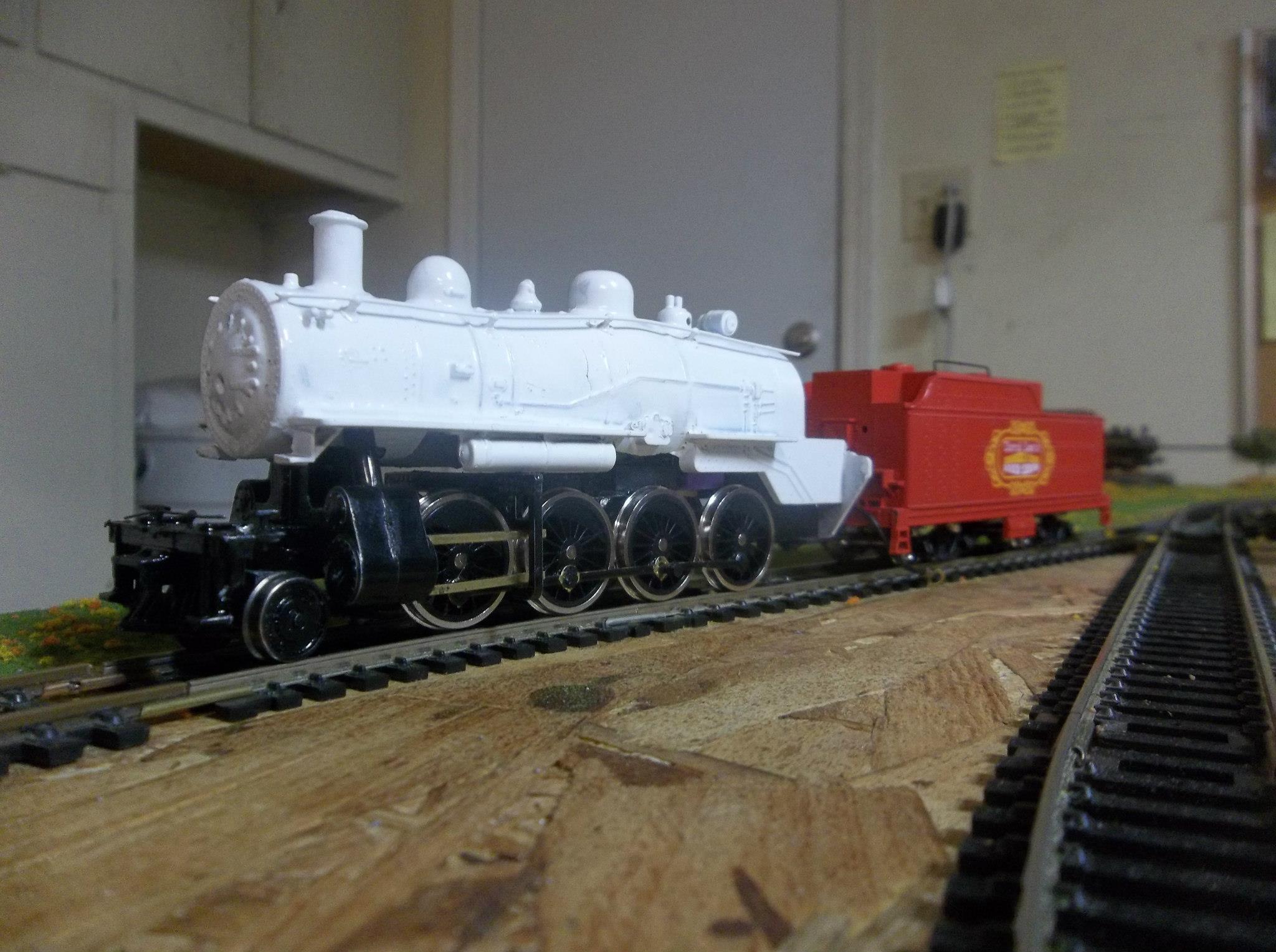 my MDC-Roundhouse former 2-8-0 Circus kit now has a freshly repainted boiler! It was black then my friend gave me a great idea to paint it white for a more circus theme. So i used Napa Carburetor cleaner to remove the 2 layers of black paint and get it back to bare metal, primed it, then after letting it sit for 2 hours sprayed white paint on the boiler! I love the results!