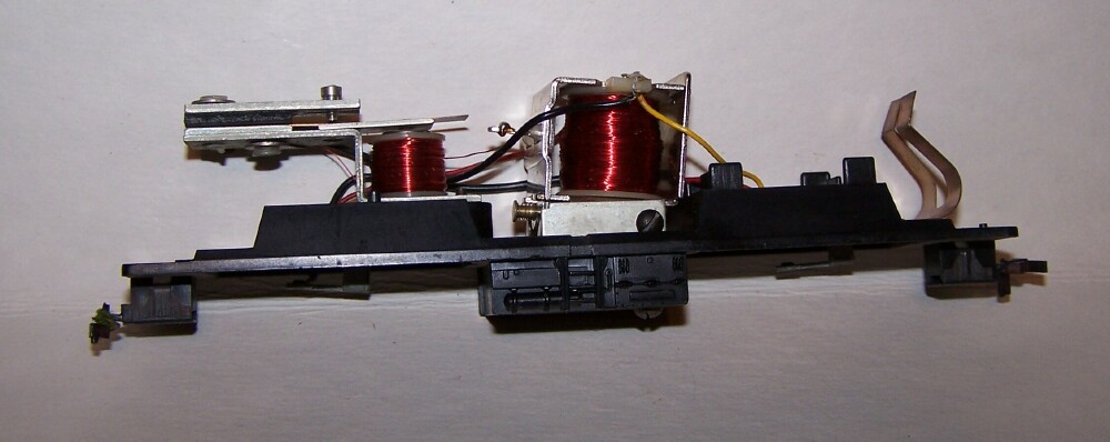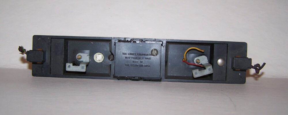 I bought this from a club member of mine, I've searched through ALL the HO Lionel catalogs on HOSeeker.net's site to no avail. I can't find a single example of this type of chassis, with the coil hanging down in the middle, that would be a dead giveaway, but no car in any of the catalogs on HOSeeker match this one. It has two coils, not sure if it's an action or a sound car? Definitely has Lionel Corp NY, NY imprinted on the bottom. But stymied as to what it was originally. Any idea, guys?