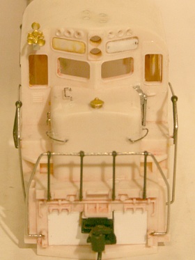 Detail Associates 229-1106 Alco Lift Rings 229-2202 Drop Grab Irons 229-132 Hand Brake (You will need to make a notch in the short hood next to the front cab door to add this part)  229-148 Head Lights (I did not replace the headlights on my model but I would if I had to re-do this project) 229-2718 GE Grills 8-40B or 229-2723 GE Grills C 44-9 or 229-2717 GE Grills 8-40C