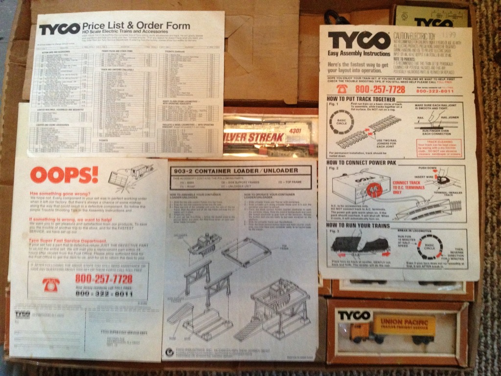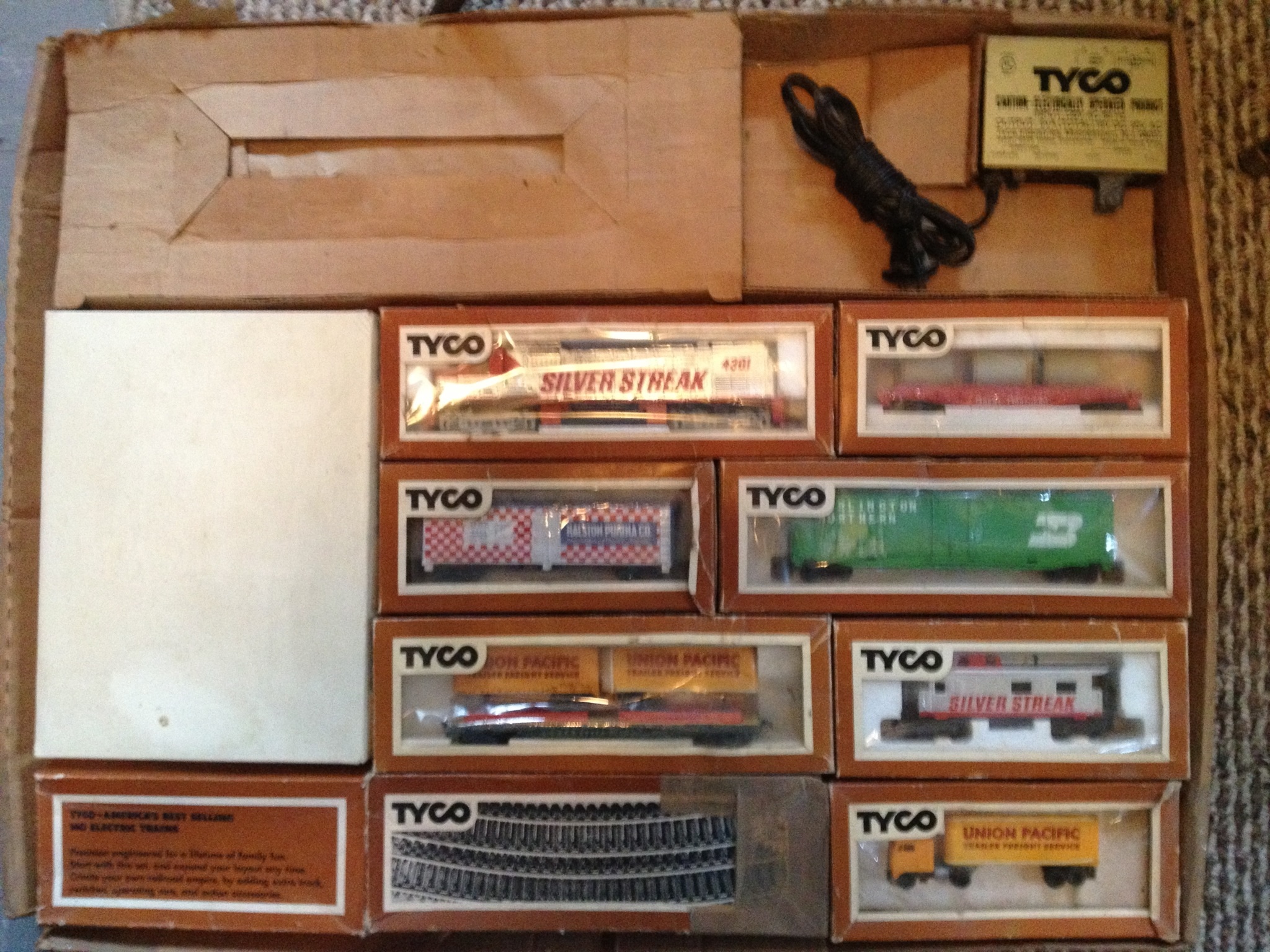 Here is my Tyco Silver Streak set from Christmas 1979. It is complete except for the box lid and the cardstock truck terminal. It does show some wear and tear since the 12 year old me did play with it.