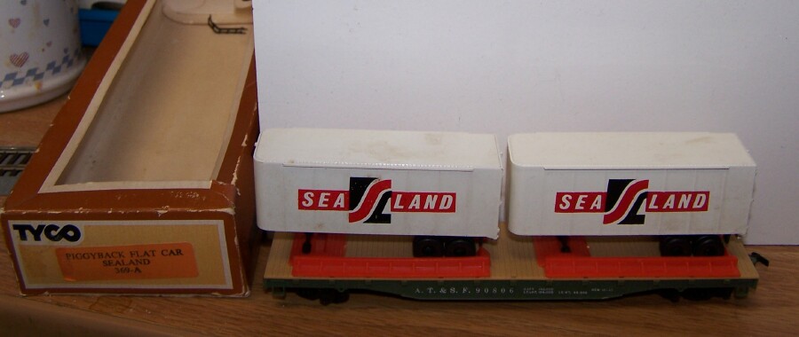 While organizing my dining room and trying to empty it of trains today ( wife is on me again ), I ran across my piggybacks, and so will post those today. Opening one box lot of HO stuff I'd bought through Craigslist, I came across this piggy car, forgotten I'd had a Sealand ( one day I'm gonna get my stuff documented in a spreadsheet! ). Anyway, probably my only Sealand Piggyback, but who knows.