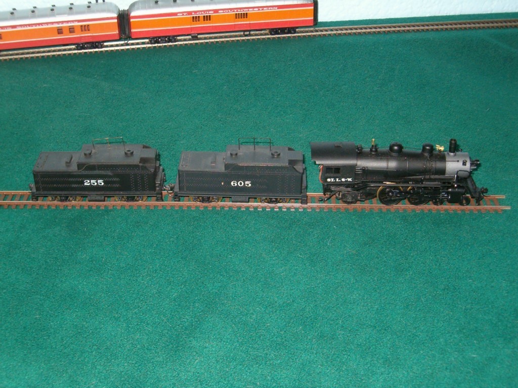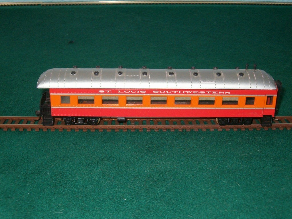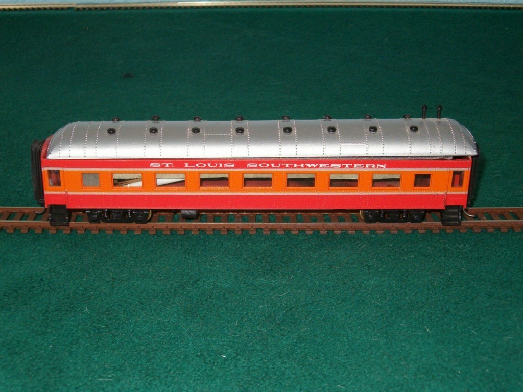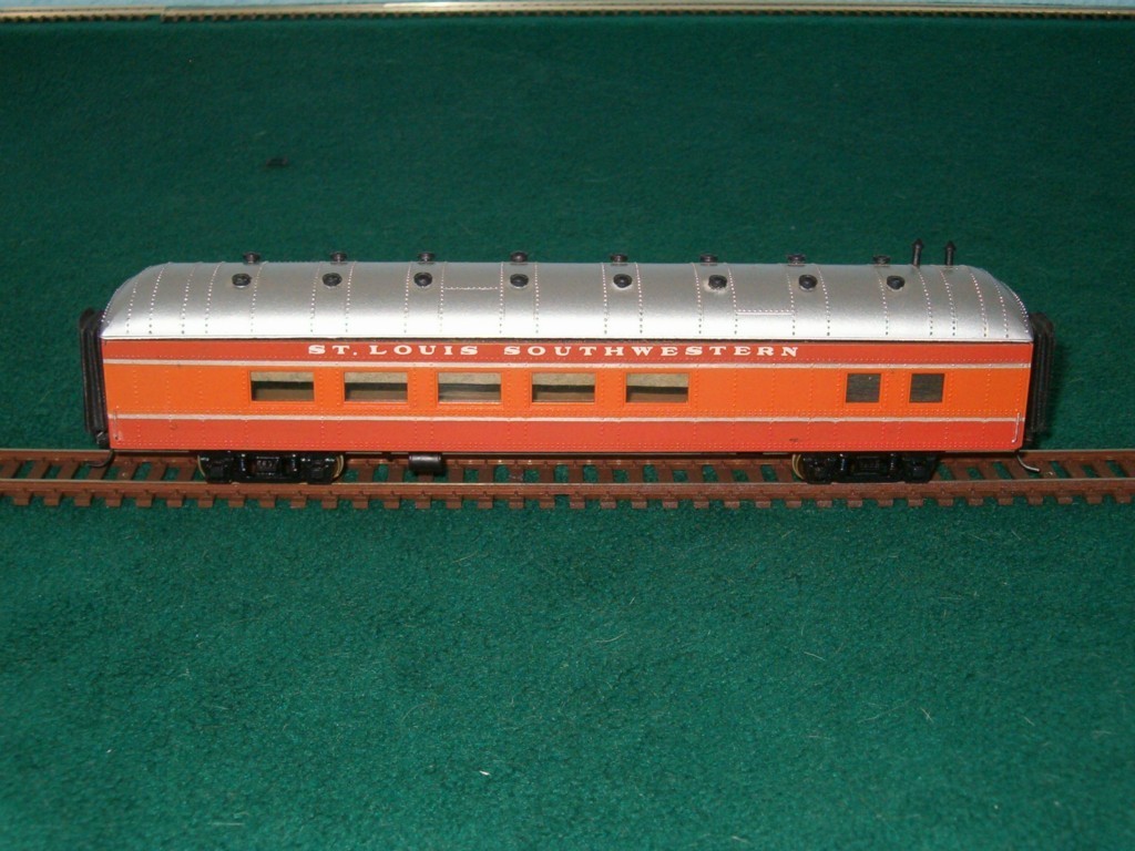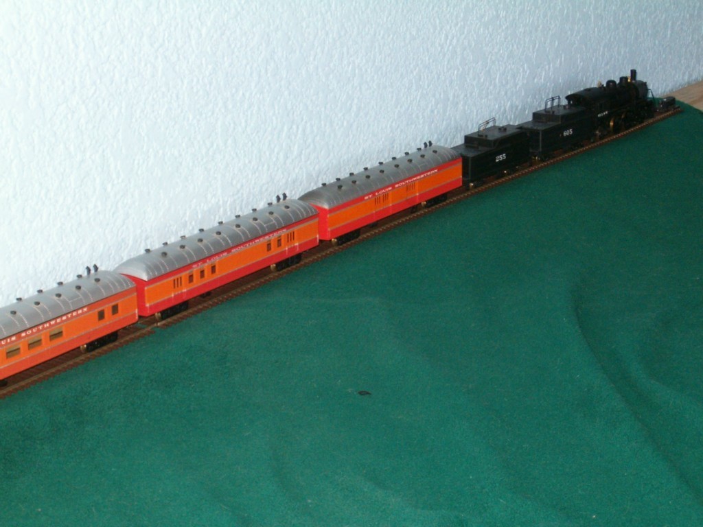 Okay I won this not factory but custom set last night on ebay! I was looking for a good christmas present for my dad to get me like I do every year and I was already set on a Union PAcific 0-6-0T but then my buddy John Minor showed me this on ebay with only 8 hours to go left, was $50 with no bidders!! It's an all Roundhouse custom set, SSW or Cotton Belt line, it features a 4-4-2 Atlantic with auxilary tender, and 5 matching Daylight scheme coaches!! I can't believe no one challenged me!! First christmas gift knocked down. The 2 other items I plan to get are from ModelTrainStuff.com These are the auction photos