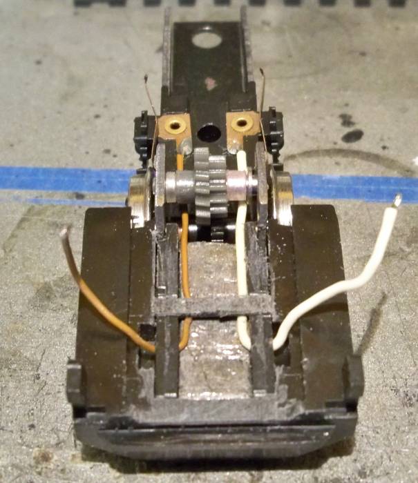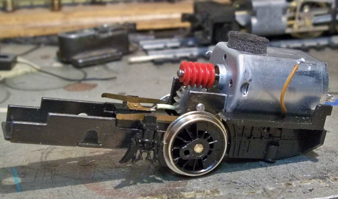 Seeing the A-3's in the last LOW I got the camera and took some photos of an A-3 I have been working on. (thanks for the kick to get this finished) The jist of this project was to slow this loco down for switching duties. I replaced the idler gear with a reduction gear from a Mehano diesel truck. The gears had to be drilled to fit the idler shaft.