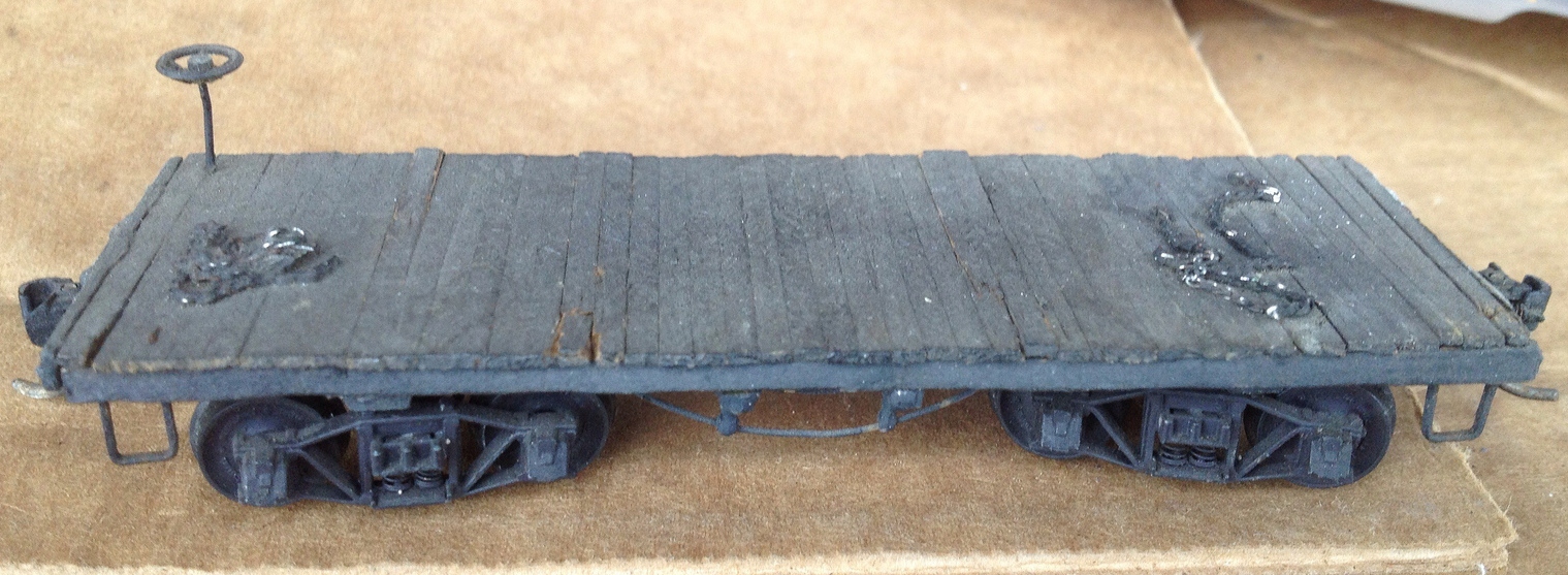 A scratch built wooden flat car: