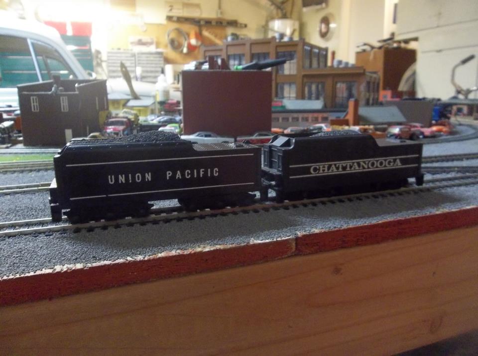 My car was really an old Mantua 4-6-2 coal tender that I made a new auxilary tender for my favorite loco, my Roundhouse 2-8-0 David Lee's Circus consolidation! Painted white to match the boiler, cover still needs to be built over the whole where the coal bunker was removed. Used a bench grinder to completely remove the bunker.