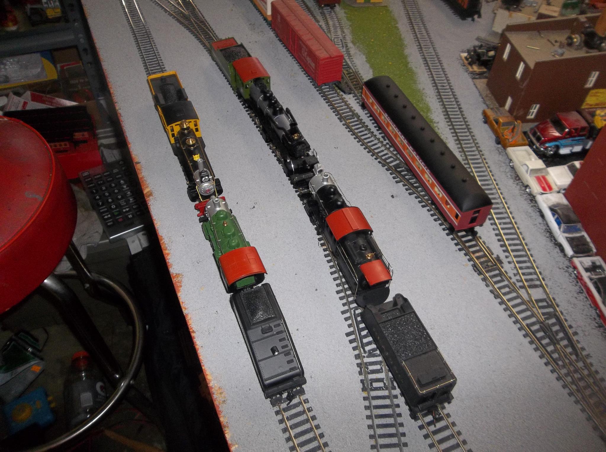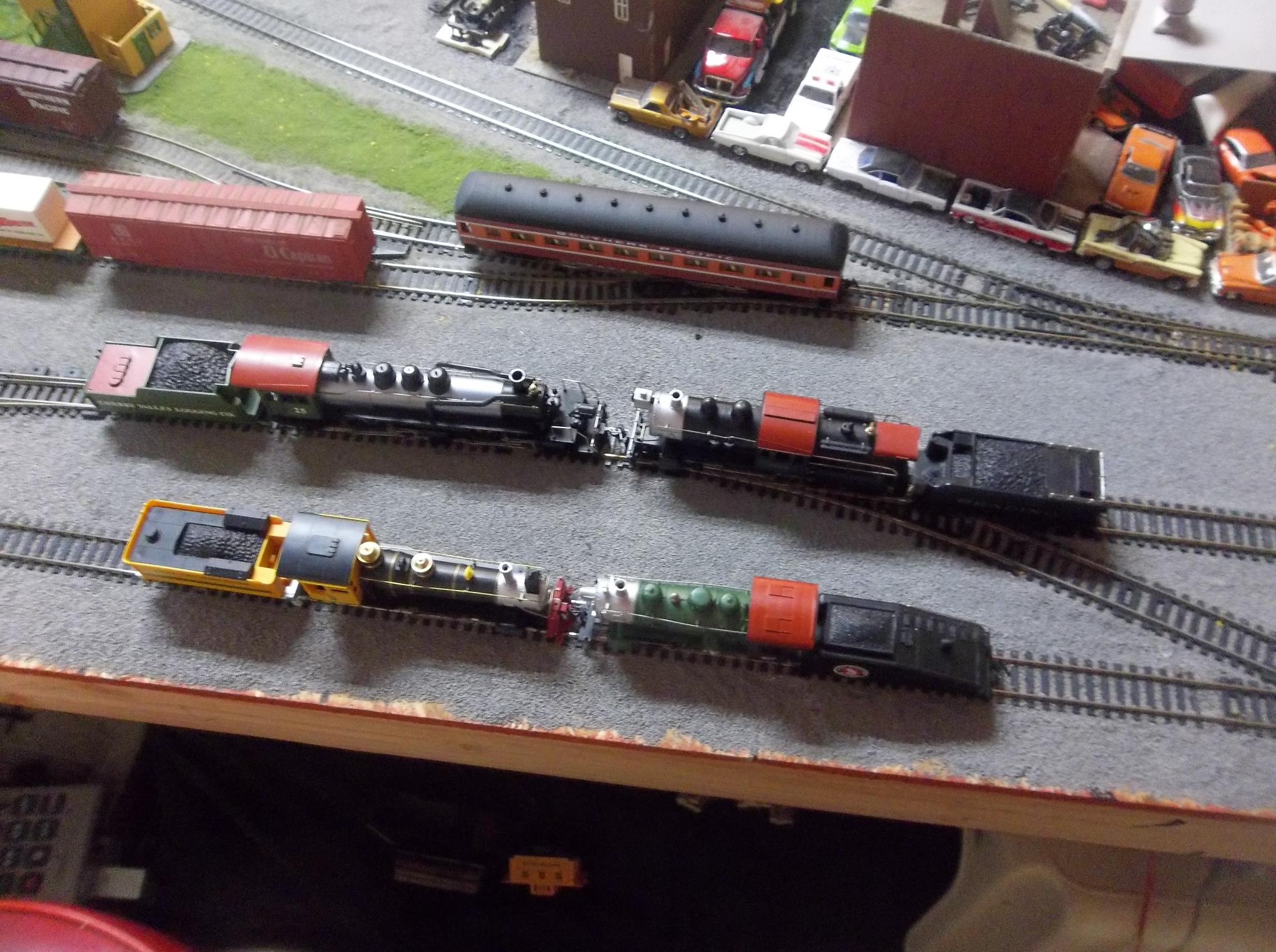 In mid 2011 my go to train store for everything for the last 15 years purchased a collection of 4 Mantua steam locomotives from a guy. In December 2011 I purchased the 2-6-6-2 #25 as a christmas present. That's where it began, and on that day i told myself I'm going to buy all 4 of those steamers, clean/oil them, and keep and operate them all together. They were all different wheel types and roadnames but I didn't care I just wanted all of them together and to not be split up. I run an HO tourist railroad so I'll buy any steamer i like, especially Mantua! It would be 5 months after the purchase of 2-6-6-2 #25 that I would get the 2nd one, a Reading 2-8-2 Camelback #1608. It would be another 4 months before the 3rd one would be purchased, a Rio Grande 4-6-0 Dixiebell #3! I bought these locomotives according to most expensive to least expensive. Why? So it wouldn't take as long the next time to save up for the next engine! There were multiple times I could've got the last steamer, a Great Northern 0-6-0 Big Six #407. The reason i didn't get it sooner is I knew it'd be there for a while and no one would buy it, it was very hard to find, you'd have to know its there in order to find out so i knew i could put off getting it. I decided when I got my christmas money that I'd stop procrastinating and buy it! So I went to Roundhouse yesterday and bought it! It's so rewarding and comforting know I achieved my goal. it may not seem like a lot to you but it took 1 year and nearly $250 total to buy these locomotives! They are all fully cleaned and lubed and fully operational! I will be doing special photo shoots with "The Four" in the future but I'm so glad I finally have all of them! All the workers and owners at The Roundhouse know me and like me very much. My family has been going there since before I was born and now I go almost every month. They were so impressed by my determination that they said whenever they get an old used HO steamer whether it be Mantua or Roundhouse or Rivarossi, they will call me and put it on hold for me to buy! Couldn't be anymore thrilled!