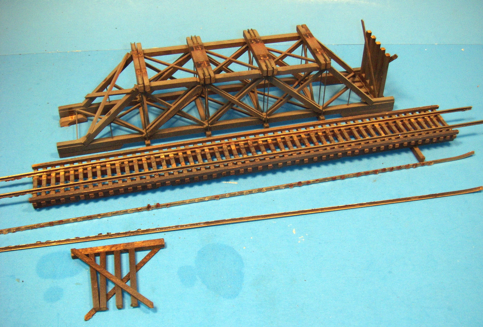This week i have up for presentation one of the several RR trestles and bridges I have packed away in storage. It is made completely of wood. There is nothing better than the look of a wood bridge or trestle: