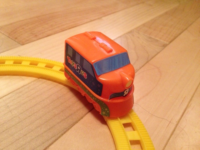 Let's call it a Toys R Us F Unit. It was my son's kids meal treat last month at Wendy's. You wind it up and it goes around the little loop of track.