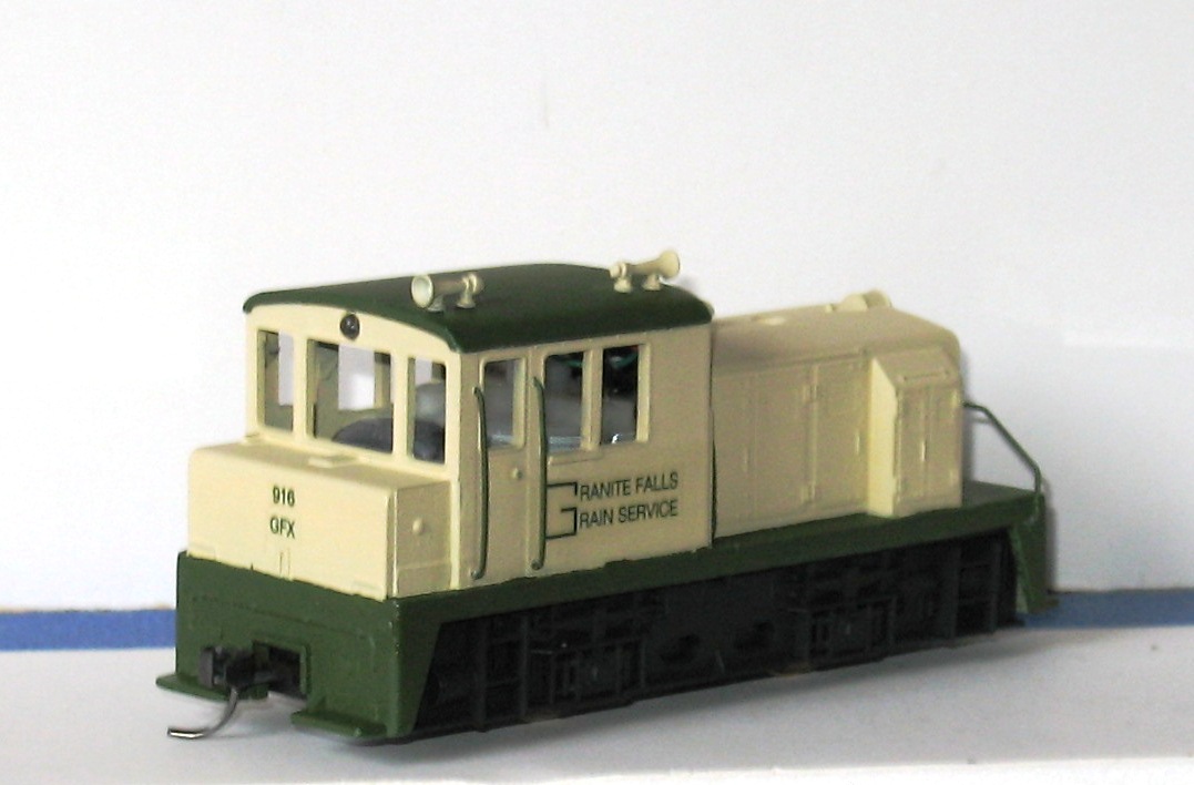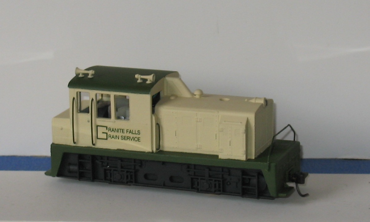 Granite Falls. MN sits southwest of the Twin Cities on the northern edge of the midwestern corn belt that runs through the center of the country, hence my desire to use a corn-like color in the scheme (the reason for the green is obvious). The actual town is very picturesque (as per the internet) and they do have grain elevators in the area serving the farming communties. The real town is within the "service area" of my MSL&W railroad, so it would be reasonable to see one of their engines up at the Sioux Lake Engine and Yard Facility being worked on by the shop and paint crews, to gain some income for the railroad.