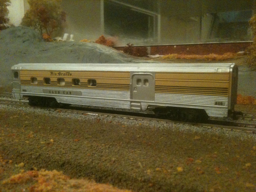 A couple months back I bought a set of Tyco Rio Grande streamliners. Everything was near mint except that the combine had several large chunks missing from its skirts. I was lucky enough to find a lone combine up for auction on the bay a few weeks back. It arrived today, and in much nicer shape than my original
