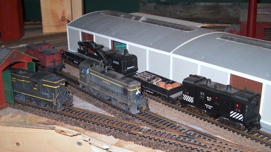 ANNA Railroad engine house. (old layout) Stewart Alco S-2 is going out to do some switching. frank