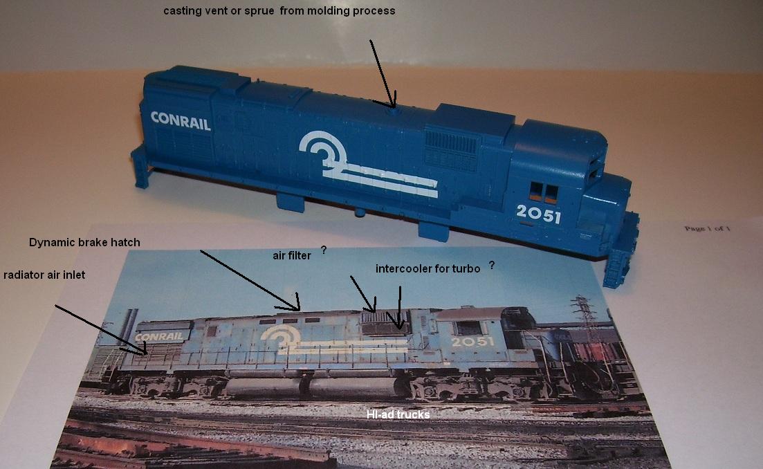 In that last picture of the shell next to the pic of the real unit, on the roof behind the cab, what's that box structure? Dynamic brake grid? I wonder why the box on the Tyco shell looks like it stands up a tad higher than on the prototype?