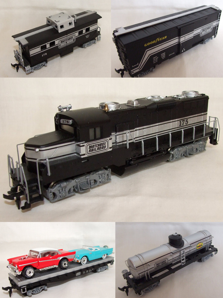 My father just got a set of 3 ho cars that say matchbox railroad. They are black and silver. On the bottom they do say Mantua. He got a caboose and a boxcar with sliding doors and a tank car. they are built well and heavy. Id like to know how rare they are and if this was part of a set or not. If it is id really like to complete the set for him. I will post pics tomorrow. Any help will be appreciated.