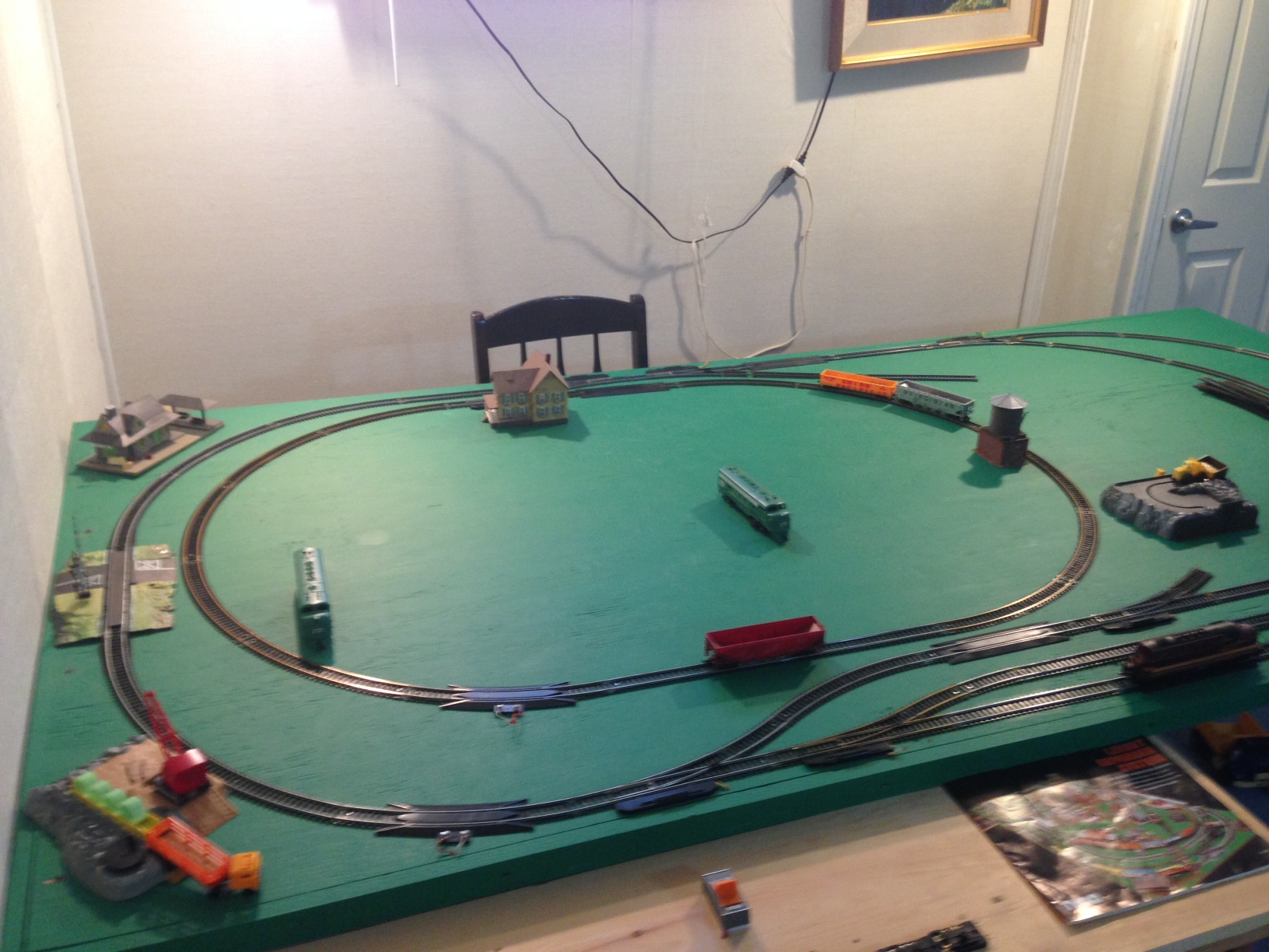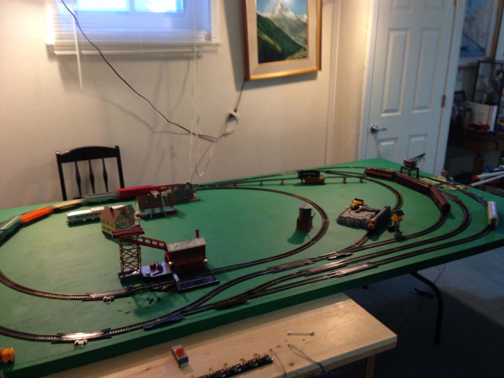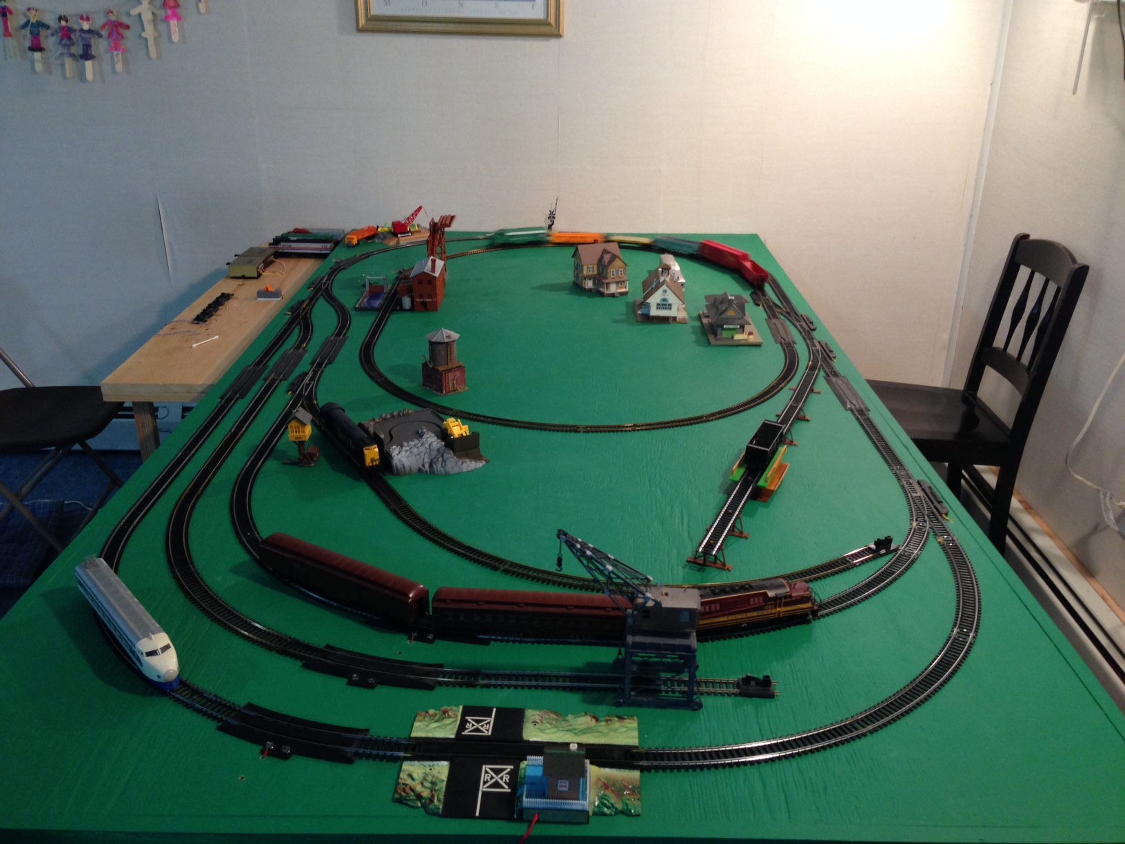 Had some free time over the weekend, so I somewhat recreated the layout plan with some changes. The scenery and effect is minimal but still fun to run. Easy to take apart after use. . . . The benefit of this plan is you do not need a permanent layout. You just need imagination and patience.