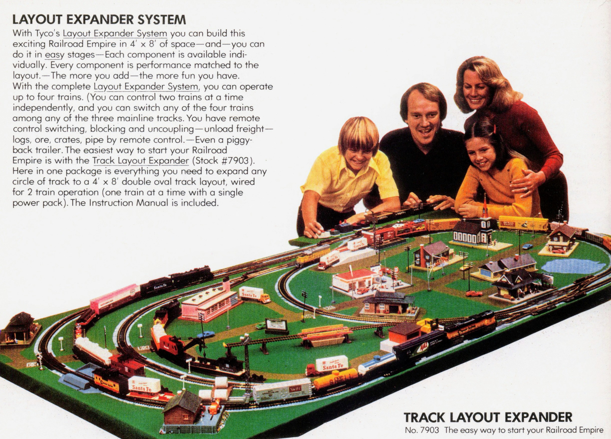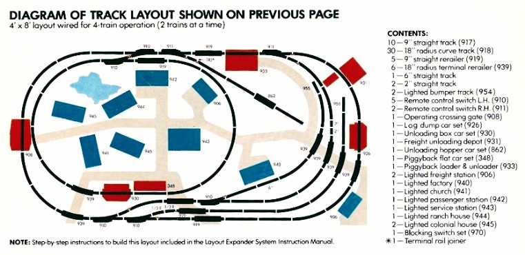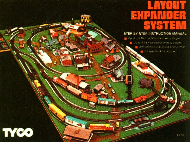 this was a showcase layout that TYCO was using to sell the most of their high end product, or the most product(shrugs). this signifies the "dream set" that most modelers first aspired to, until they decided on a layout more to their tastes