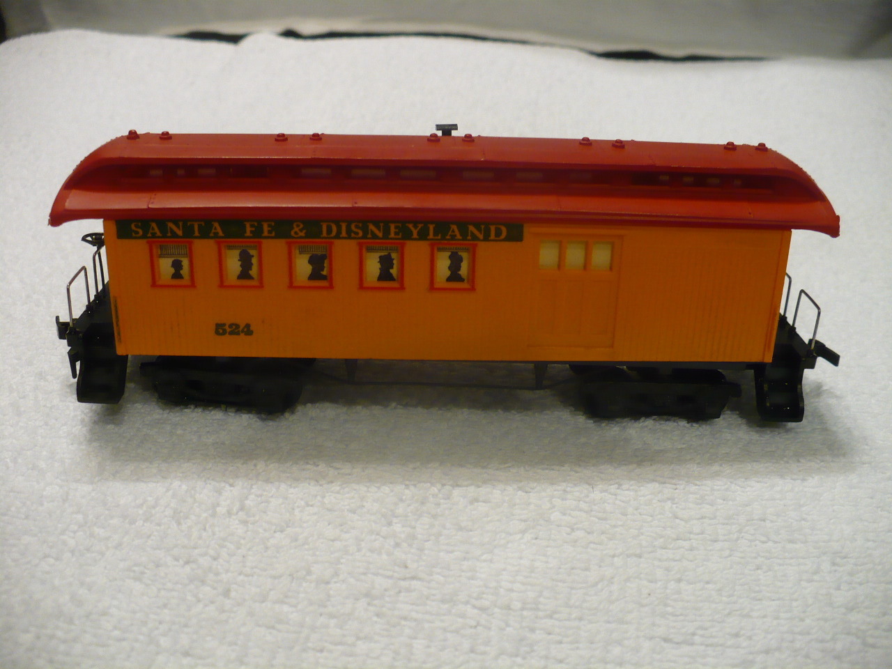 Waiting for this to arrive,another Santa Fe and Disneyland baggage passenger coach car. Looking for the boxcar and water car yet.
