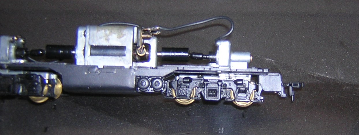 Somehow it didn't photograph, but the word "JAPAN" is very faintly embossed on the bottom of the tank. And it doesn't fully match an Athearn geep frame either...