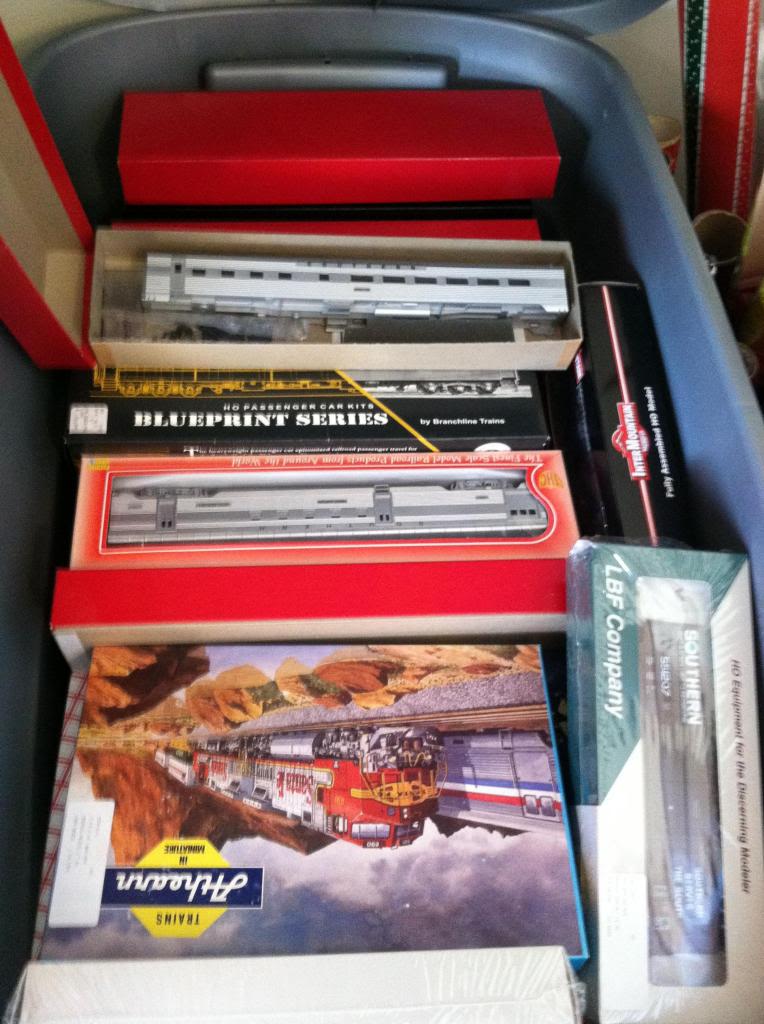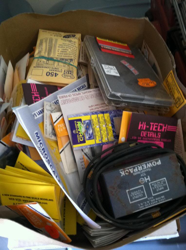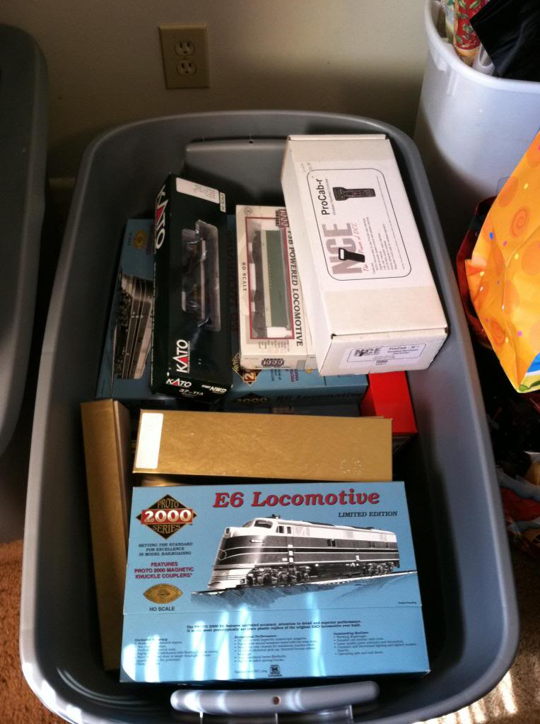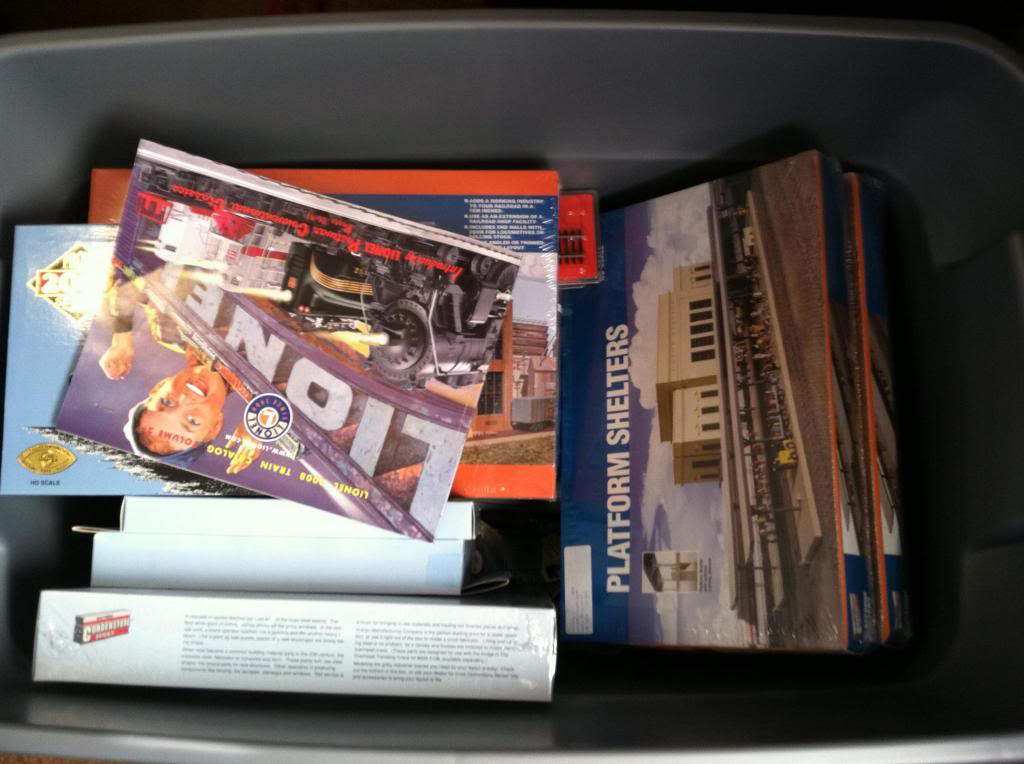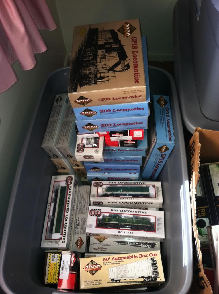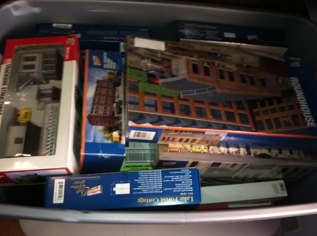 So most of this stuff is sealed and he also has a plastic drawer tower full of wires and motor parts and people and layout scenery stuff like trees and lichen and all kinds of stuff. For 525 bucks!!! Everything in the totes is still sealed in the box!!