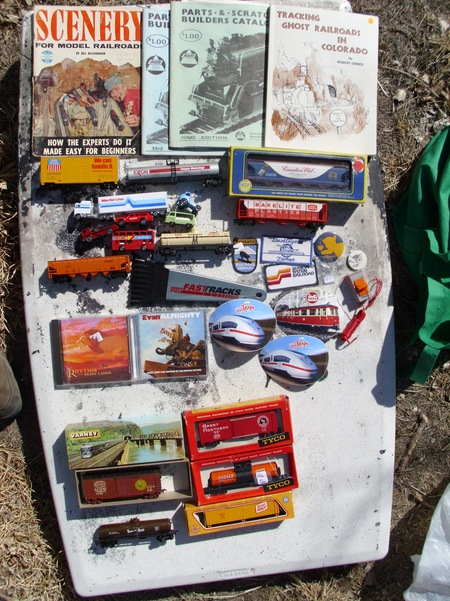 I didn't buy any locos too high priced  Not shown is the Model Railroad book How To Wire Your Layout That is at a friend's place & he borrowed it for a while Dated 1958  Most expensive thing I got was the AHM Canadian Club hopper $25  Need to get the Lipton, Niagra, & Wonder hoppers  I didn't spend the entire $300+ I took either