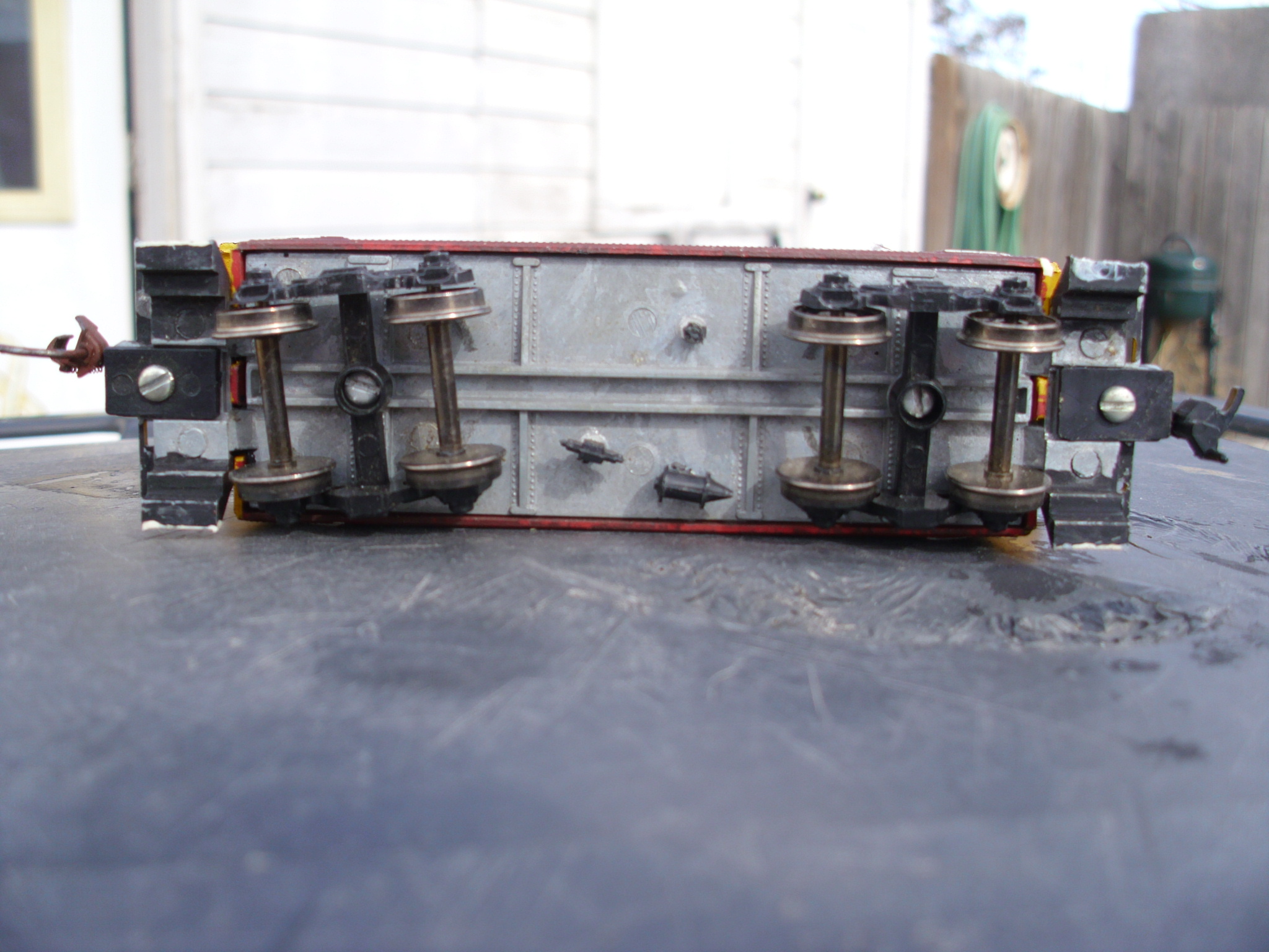 Well, now that I know it's a relatively "oldie, but a goodie", I have no problem with refurbishing it. Repainting the inside primer gray, picking a fresh exterior color, ( but first removing the decals and secondary paint job), some Kadees, window glazing and the right trucks with steel wheels and she will roll yet again for several decades!