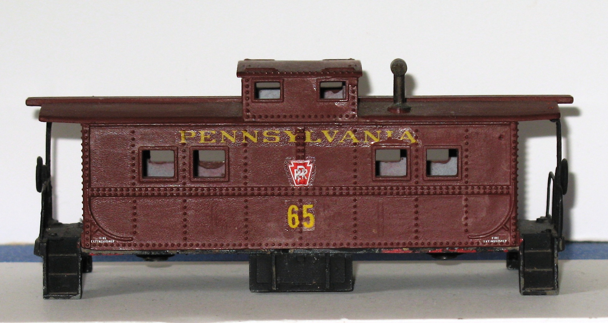 | I stand corrected. Upon further examination of the photo you can see the C&EI letters on the shell. I was under the impression that all Penn Line cabooses had PENN LINE embossed on the diecast underframe. Evidently, the 1955 C&EI Penn Line caboose with Fleischmann trucks does not.