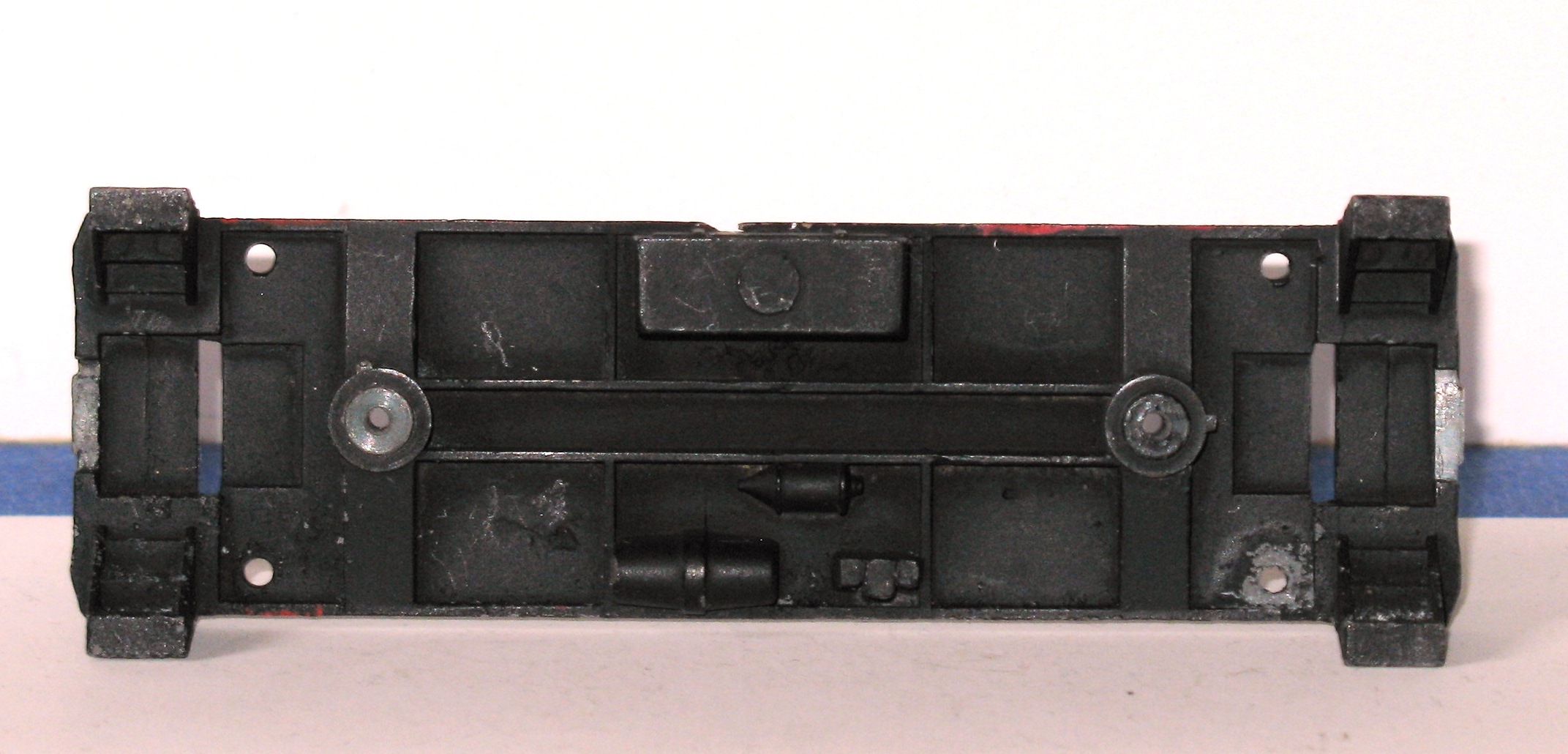 While the first run of Varney cabooses did use a cast underframe, I've never personally seen one. I suspect, however, that it was identical to the plastic replacement visually, and the Guide notes it had pockets for frame mount couplers and seperate brake detail. It also notes the cast frame was attached with brass rivets rather than screws.