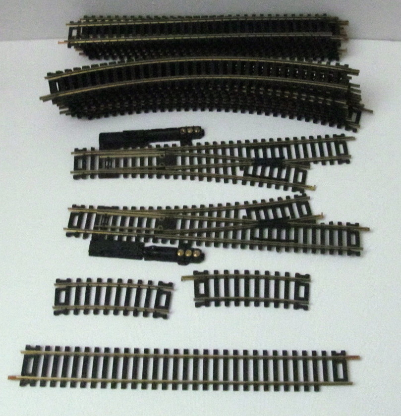 Brass lovers - I have this small lot of Tyco and Feller Garnet ( Made in Italy ) track for sale. The switches are left and right and remote - no wires or controllers for them - the left switch cover has heat damage - both are untested sold as is - the switches move freely and are made in Italy also by CASADIO - they are no 4 turn outs -include the small radius curve for both -see picture - 9 inch straight track =8 pcs by Feller Garnet - Curve track is Tyco Brass = 11 pcs - track is in overall good condition with no tarnish of color - needs to be cleaned by you for running. PRICE SHIPPED - $12.00 FOR US AND CANADA $15.00 - IF INTERESTED - FIRST TO REPLY GETS - PAYAPL OR MONEY ORDER