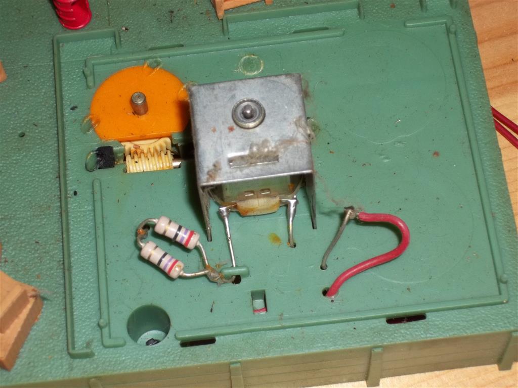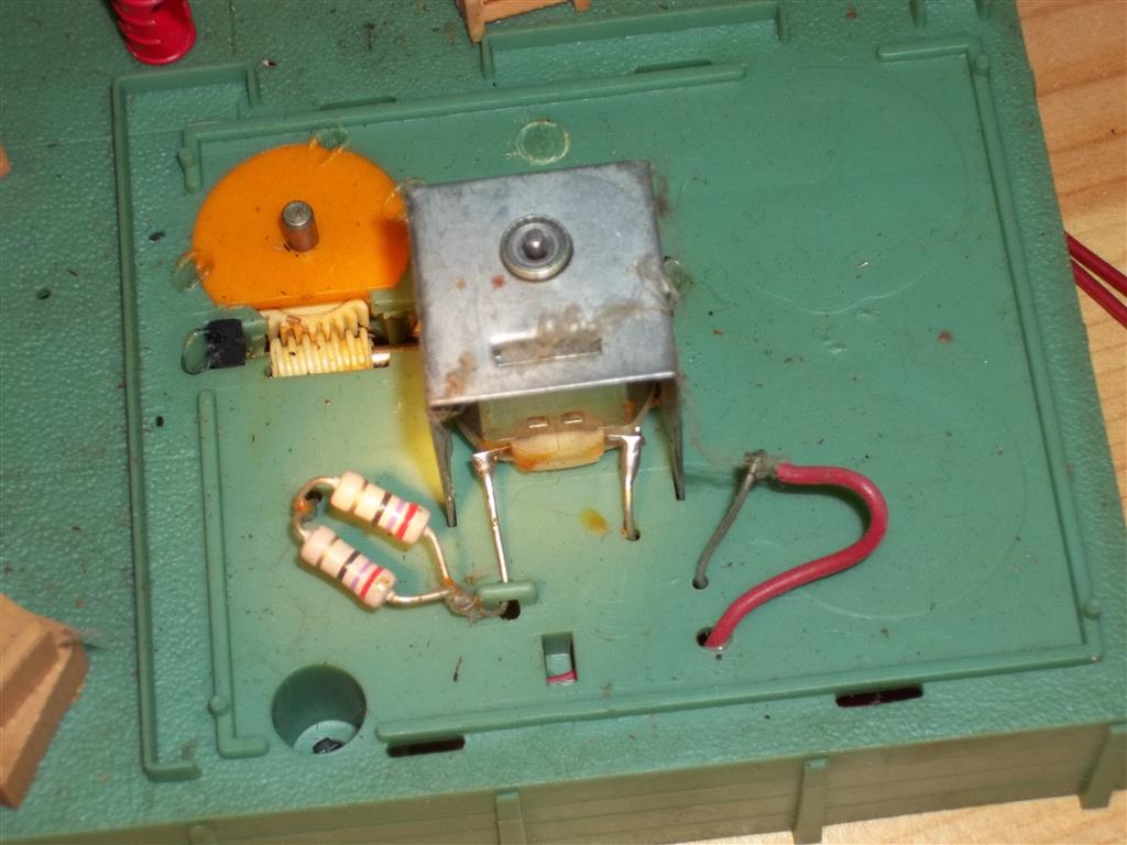 Just bought these two at a train and hobby show for $6 total. They have some wiring issues. Could someone please post a good detailed pic of the inside and bottom of the wiring of these accessories? Is there a schematic as to how these items are rigged up? Some of the resistors are missing and even if I had the color bands I'd figure it out.