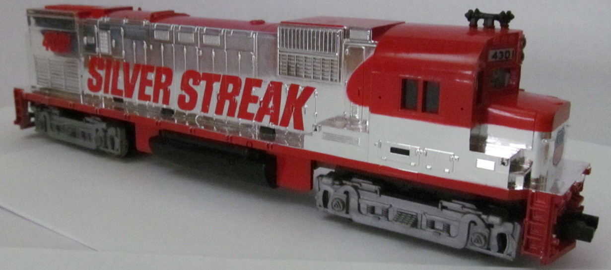TYCO RED ROOF SILVER STREAK ALCO 430 - IN MINT CONDITION - This red roof version is a later run production in the Silver streak locomotives -approximately mid 79 -80 - The Chrome roof was beginning issue in 1978. I can remember the store sets in 1978 having the all chrome locomotive and also in 1979 - then i remember seeing the red roofs around Christmas 1979 and 1980 as use to drool over these sets as a kid - never got one though from Santa at that time