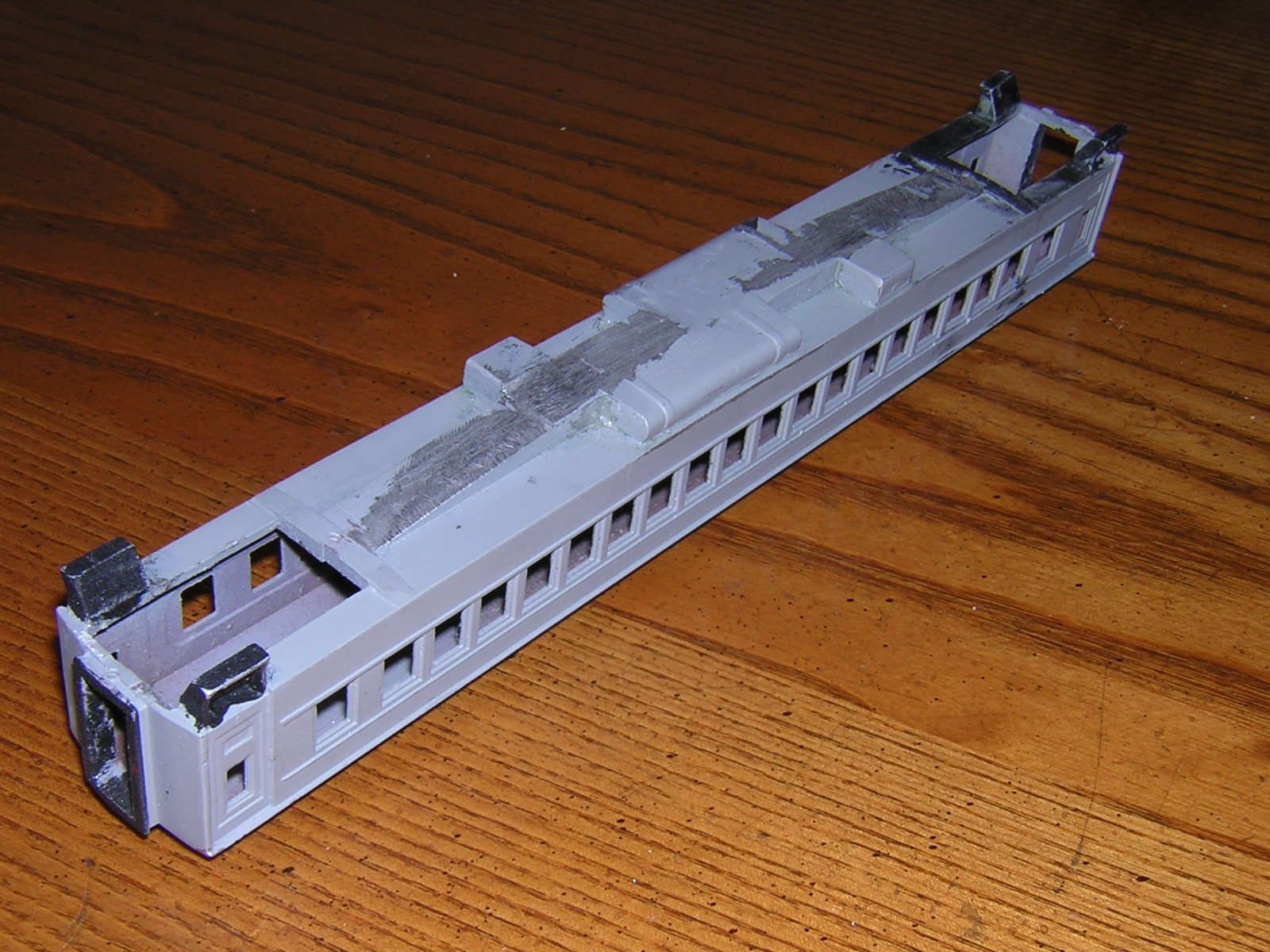 Two shots of my primered, glass-beaded Knapp coach. Dave