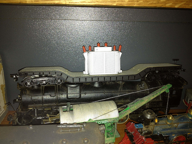 Heavy duty depressed center flat car w/ transformer load (all plastic)