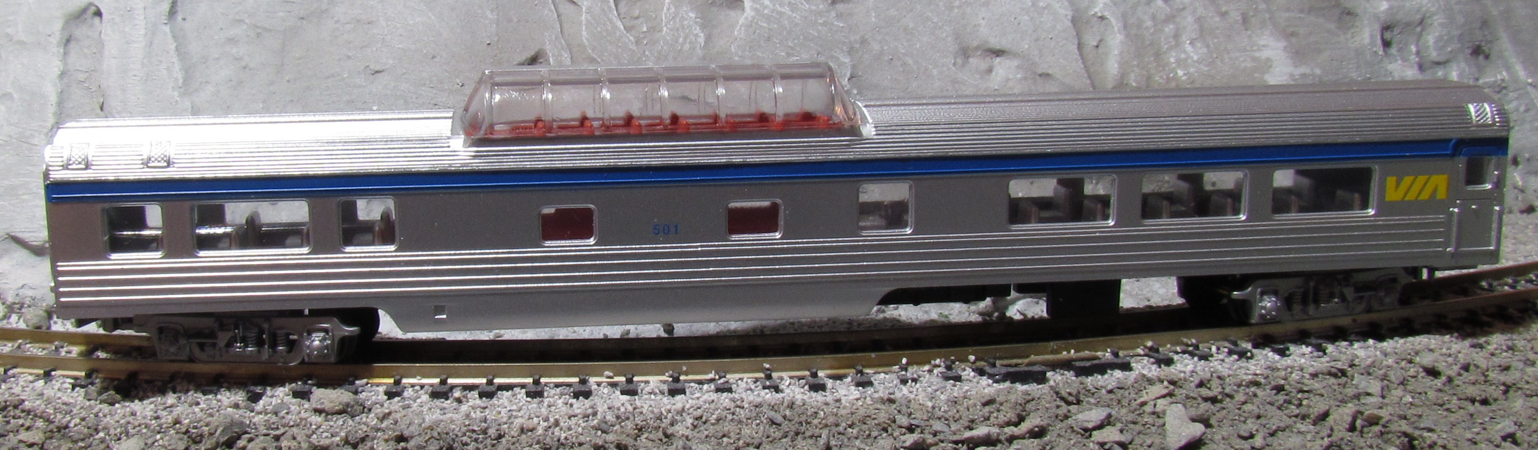 Here's a twin piece to my LotW, a Con-Cor Via streamliner. I may try to paint the frame of the dome, and the couplers are going to be upgraded.
