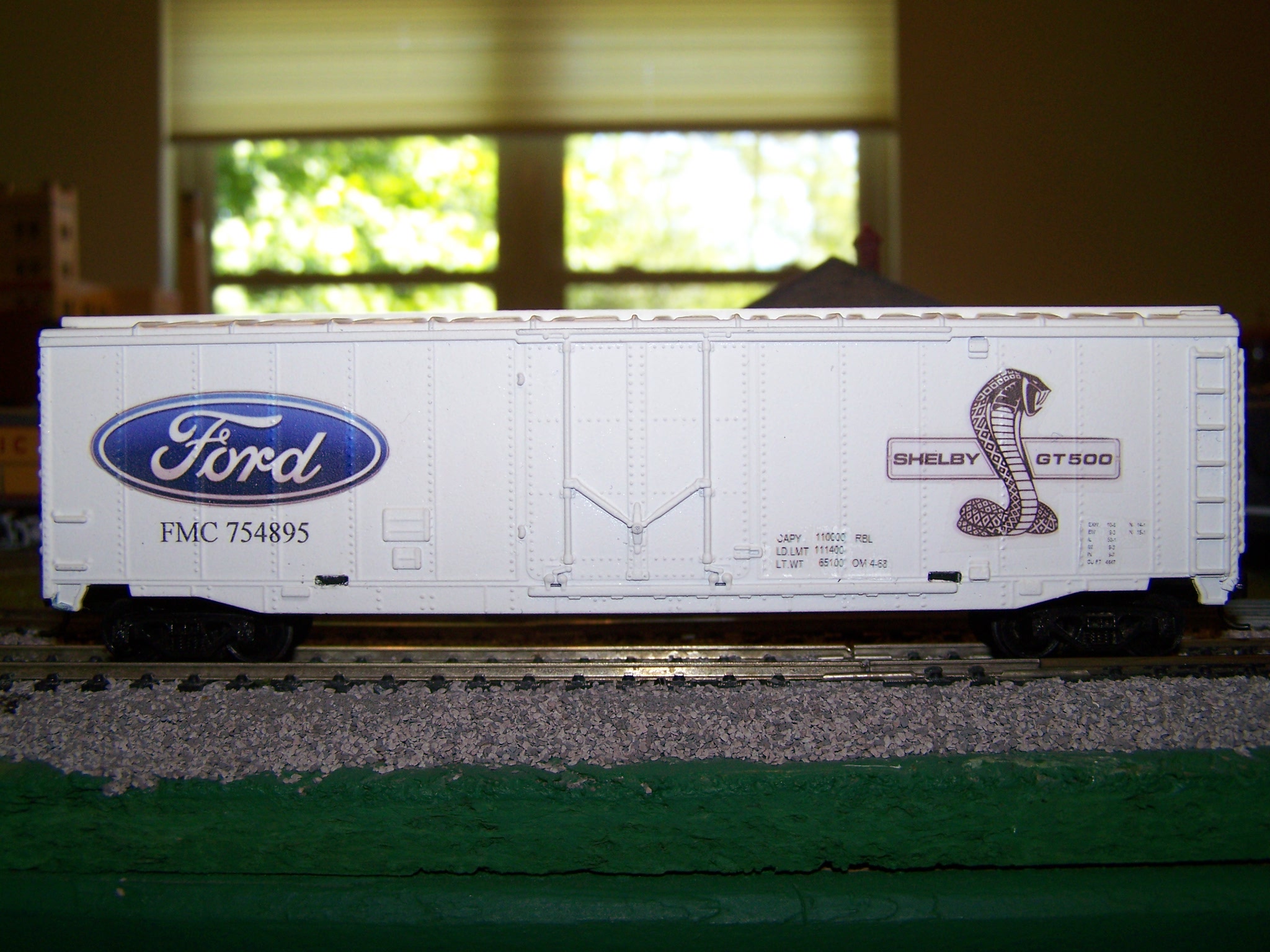 quote:My car of the week is a tribute to my car, a Shelby GT 500. I made the decals on MS Word and used an old Tyco 50 foot box car.