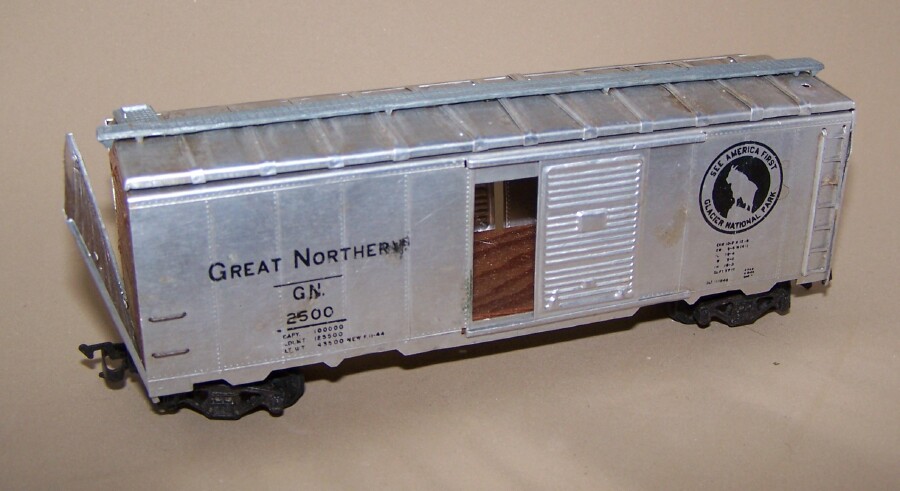 Jerry, Any chance you can get a shot of that GN box car, showing the inside of the end, that's loose? I ask as I have a few metal cars similar to that and to know who made them, would be nice as they are old, and mine are complete, BUT don't have the couplers as yours does, mine have Kadee #4's on them (YES, Kadee #four type couplers) Which also have a straight coupler "glad-hand" hose, and a straight inner jaw on the coupler.....AND are bare metal, NOT the type that's got the blackened metal as we all see today! Plus a metal draft gear box, that has small nails in the side loops of the box, and lid to hold the coupler to the wooden floor underneath!