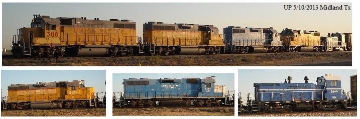 Looks Like 2 UP GP38's, 2 leased GP38's and an SW1500. The front UP unit is most likely an ex-MP, because of the lack of dynamic brakes.