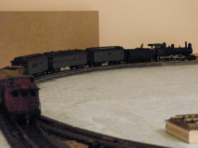 Great contributions; fun to look at. And, I have to put my 2 cents in. Needed to repaint this Tyco Rogers 4-6-0 and it was time for a tune-up (note how the wire exits below the cab via a drilled hole; never have been able to cram the backhead in over that wire and get it to stay properly). Runs and pulls pretty fair (added almost an ounce of weight inside the cab; you can see them some in the photo). I've been wanting to just paint a locomotive all black and not be worried about trying to duplicate a particular railway's colors and it seems the colors of these Rogers locomotives was all over the place.
