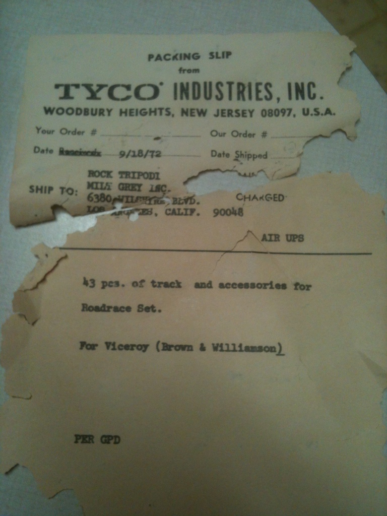 I've got some dealer Tyco literature, but don't think I've actually seen a genuine Packing Slip before. Thanks for sharing!