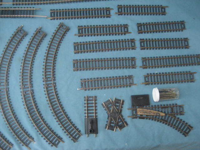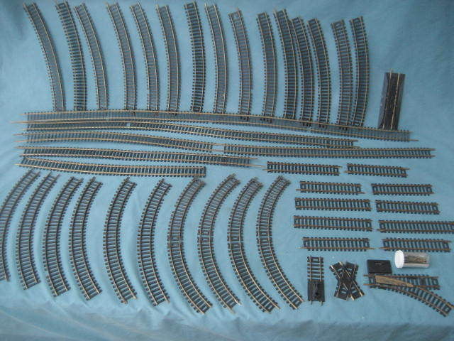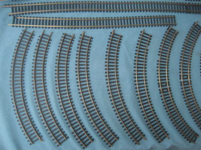 Well, I decided for some reason to search on Eldon track again this week, and lo and behold, buried in the slot track auctions, there was one LONE auction with HO train track, and 10 pieces of Eldon curved, some straight, and a switch even. I waited tonight for the auction to end, hoping to get the lot for $10, but it was not to be . Someone else wanted it, too. I ended up getting the lot for 21.80, not bad really. I'm thinking of adding the Eldon Railroad to an HO module, with all the curves, it would make a really cool short-line railroad connecting to the main line railroad. Still haven't gotten that Eldon video done yet, I will have to make that a priority on my HO project list. At any rate, here's a few pictures of my newest Eldon acquisitions. The other track is Atlas and Fleischmann, I told the seller to keep the long straights, don't bother shipping those. More trouble than they're worth to send me. But glad to get more of those 7.5 inch radius curves, and the switch, too!