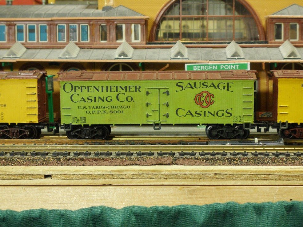 A old Varney reefer repainted and lettered by a member of the Jersey Central Historical Society. A very good person. I wish I could still see him at the Society train shows. My car is the Oppenheimer Sausage Casings. A well done car. frank