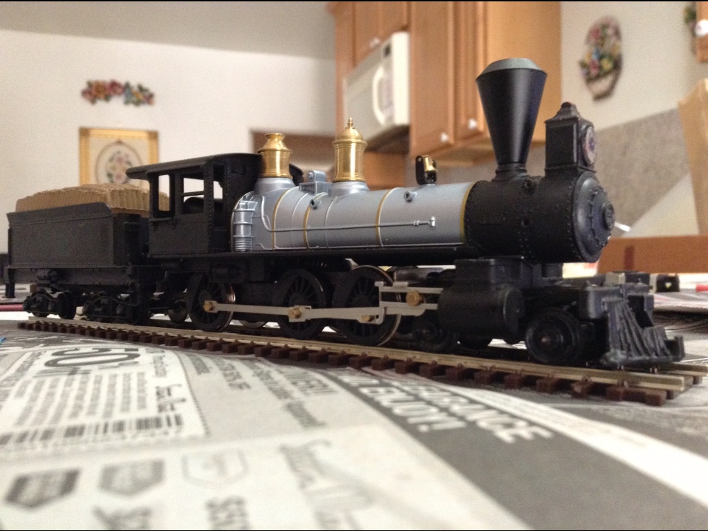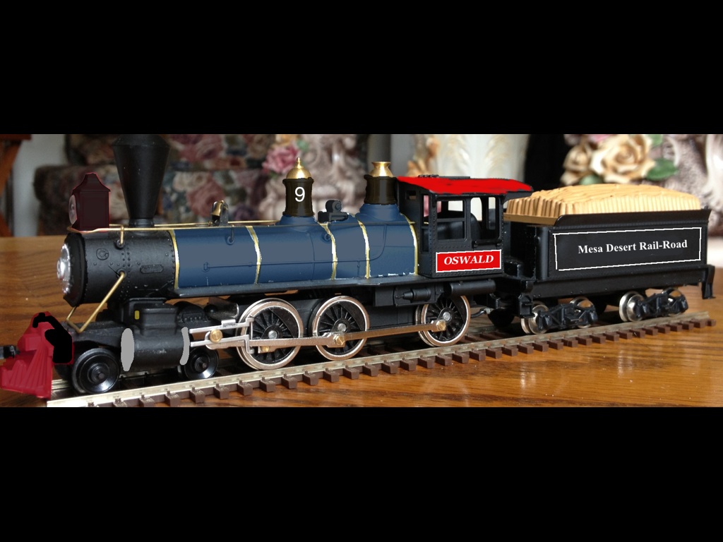 This is my 1994 Mantua Rogers 4-6-0 named Oswald. The smokebox front was (graciously) donated by a Tyco "Spirit of '76" locomotive which I had gutted for parts. Yesterday, I took apart Oswald's rods to give her drivers a fresh coat of black and to cover up her chrome tyres from the sides. She is on a chassis from the Spirit of 76 since her original fell and broke a pilot step off. When I put her back together, her wheels kept jamming more than a Bob Marley concert, even after her rod screws and motor were checked over. A worrying thing is that for the "76" chassis, the rear and middle brass holders kept falling out. Is this a common problem, the jamming, or could it be the holder plates? Please respond quickly.