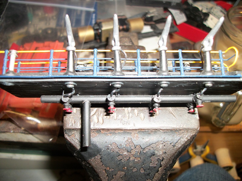 NOW, for some close up of the sprayer heads, with the hose all hooked up....NOW guys, keep in mind, the heads are NOT "lined" up for looks, they are ALL positionable, as they are NOT press fitted, and then a restriction made to keep them from falling off, they are all bolted, and one the inside, the bolts had the "heads" cut off, and a washer placed, with a nut to hold it one, and then the nut, was soldered to the bolt! They move pretty freely, by hand, BUT do not "vibrate move" durring run time.....They hold the position that they were last set at. Then, under the roof, is a whole other story....Which you'll see. Here are close ups of the outside roof detail....