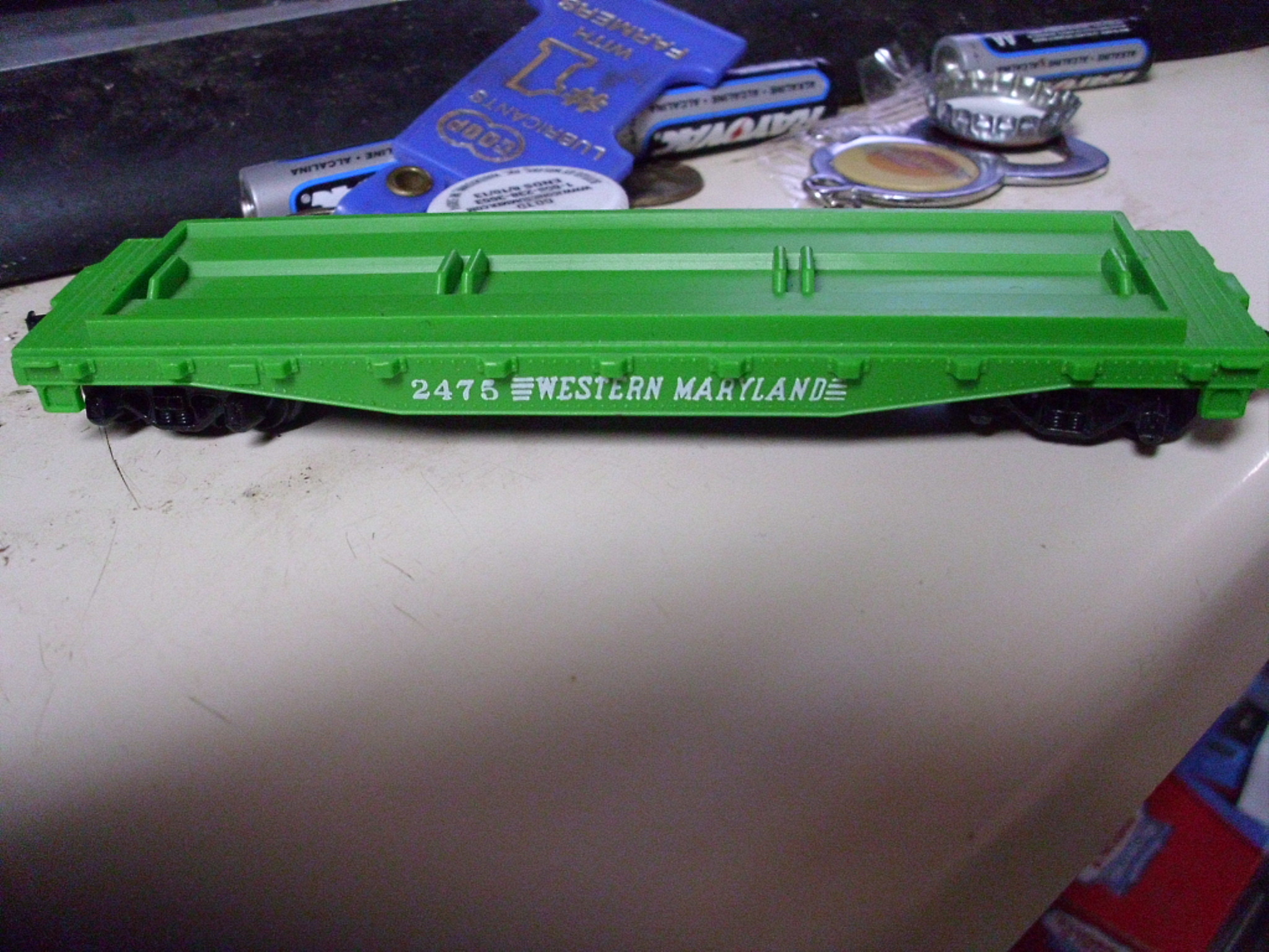 I picked up this VERY unusual Tyco WM pipe/crawler flat car for FREE at a yard sale!! It's in BN green!!