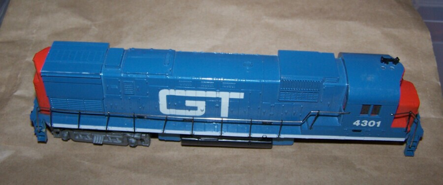 Visiting the Greenberg Train show Saturday after work ( my new PT job, repairing trains, I finished up an O gauge Williams steam engine with wiring issues ), I hit the show, and found a couple of Tyco engines I don't have. Found in a junkbox, missing part of the power truck, I got this GT engine for $2. Metal rails intact, looks pretty much unbroken. I have extra power trucks, so no problems there.