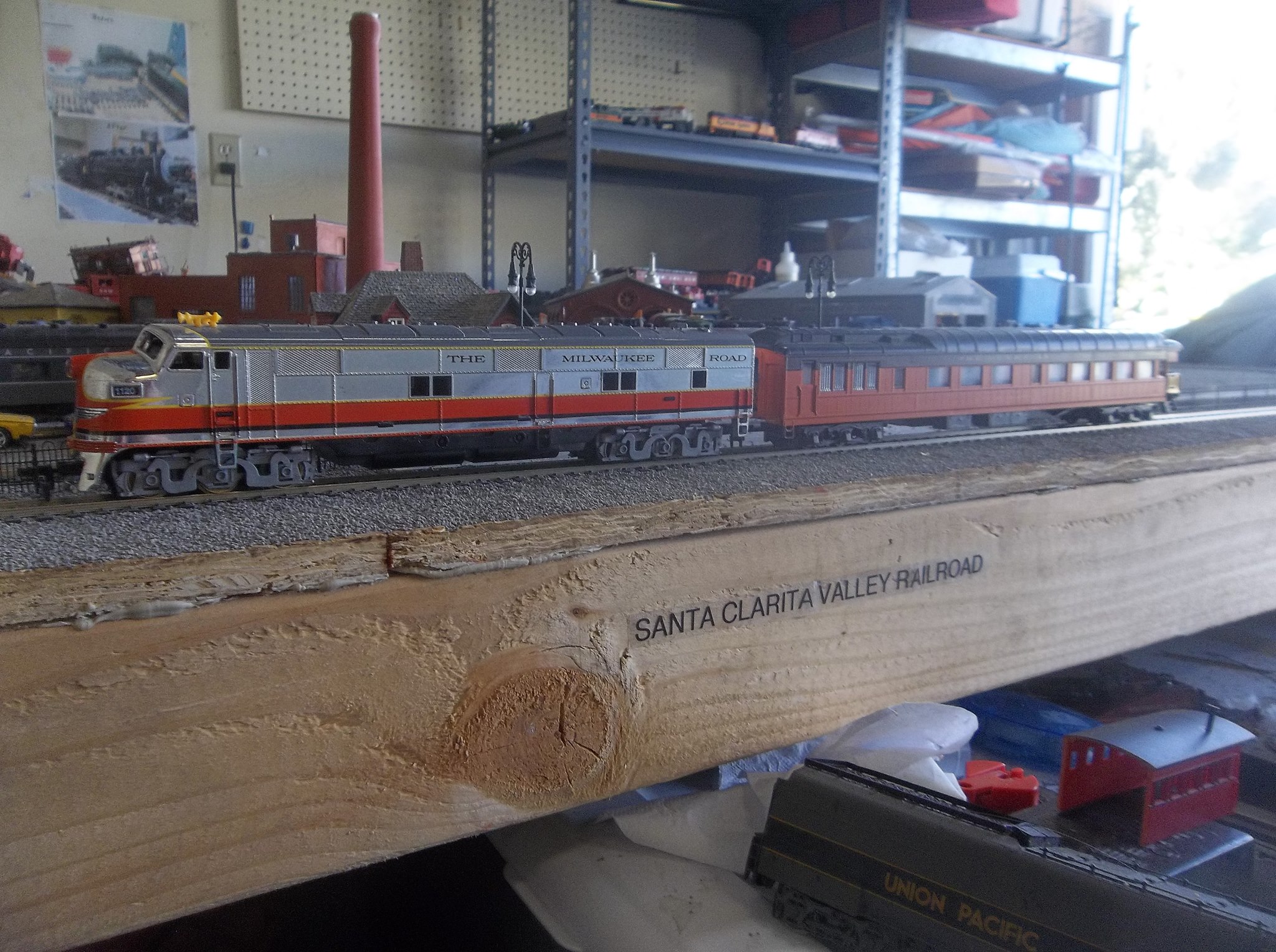 After 7 long months of slow on off work, my TYCO Milwaukee Road E7 finally rides the rails again! Story behind it was back in January I won it off eBay, it was the perfect listing, In original box which was in good shape, Free shipping, described very poorly and or it was very poorly listed but because of that it made it a perfect listing for me , was in my state of California, and was for only $15 with one day left. Was considering some other things at the time but figured if I bid on this, I'm about 99% sure I'll be getting it, love the Milwaukee Road, love the color orange, love the shine it had on it so I decided, heck I would love to own it! So checked the next day and I owned it! It arrived within a couple days but unfortunately, the engine itself was a wreck. Filthy wheels, and whoever had it last, ran it hard and put it away wet, worse part was that it was rode hard on carpet...Found a lot of carpet fiber throughout the powertorque truck. Before finding all this out I cleaned all the wheels, lubricate the mechanical parts and tried to see if it would work, after it put on a smoke show I knew it would need a truck overhaul, similar to what I did last year with my Spirit of 76 Alco C430. So I took apart the bad front truck, started organizing the replacement parts and progressed gradually. The powertorque truck itself would be replaced along with the PT plate, springs, and brushes, and after today the front wheels to the truck. However I used bad springs and an incorrect style PT plate for that type of truck. So when reassembled it didn't work at all. Causing me to have to take apart the front truck AGAIN. Being I did not wish to sink more time into one engine I left it assembled and moved onto other projects for 5 months. Finally got back to it last month when I decided to take it apart and redo it properly having gathered all the parts I needed. Yesterday I soldered on the proper replacement PT plate and I spent this morning, installing the new springs, the replacement brushes, and screwing down the PT plate. Put it on the tracks and was so relieved to see it run again! However because the wheels it had on it's front truck were missing the traction tires, it wasn't running 100% so I replaced the front trucks wheels with ones that had the traction tires and now the E7 works like a charm!