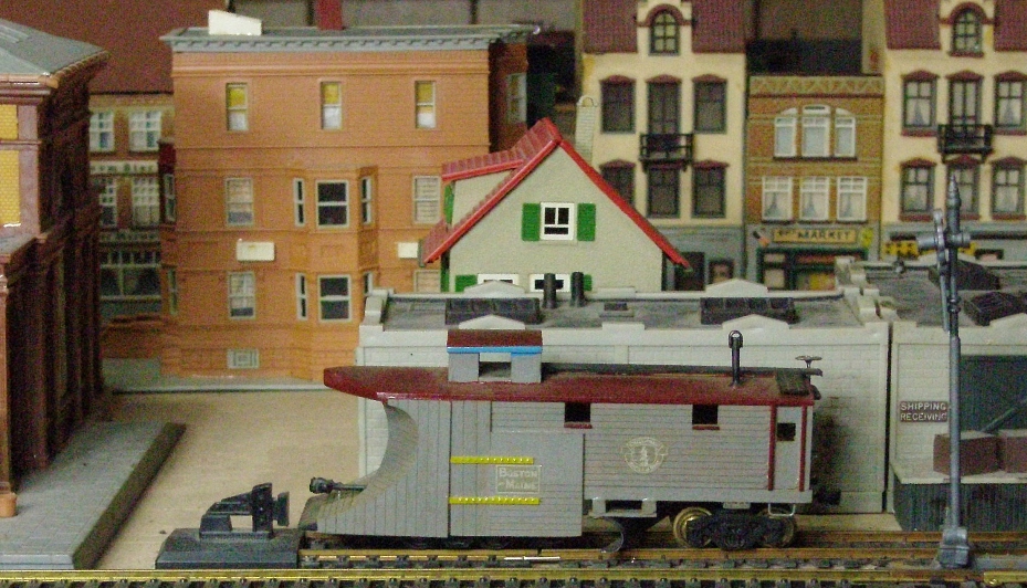 A Ambroid on main line Boston and Main snow plow. Made from a all wood kit. frank